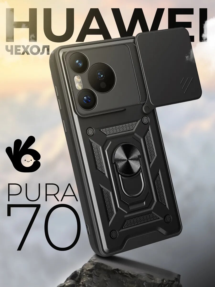 Чехол О'кейси, для Huawei Pura 70, силикон, черный, держатель-кольцо интересное: