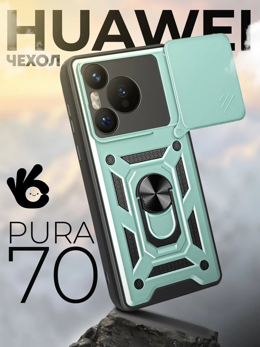 Чехол "Окейси" на Huawei Pura 70 с кольцом магнитом, зеленый интересное: