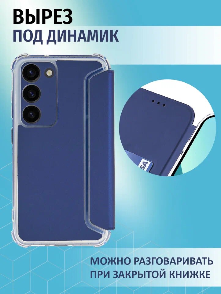 Чехол-книжка на Samsung Galaxy S23 с противоударным бампером с усиленными углами на самсунг с23 Синий интересное: