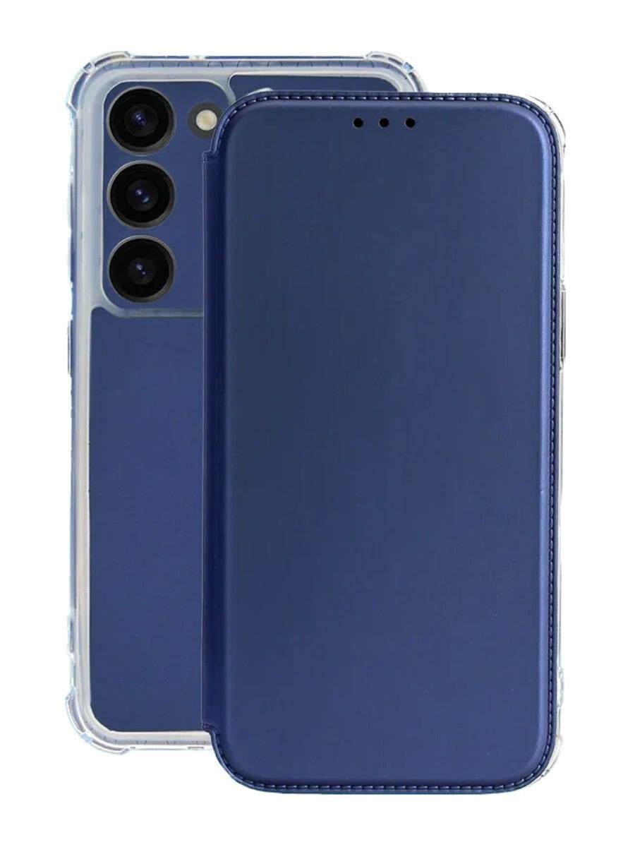 Купить Чехол-книжка на Samsung Galaxy S23 с противоударным бампером с усиленными углами на самсунг с23 Синий