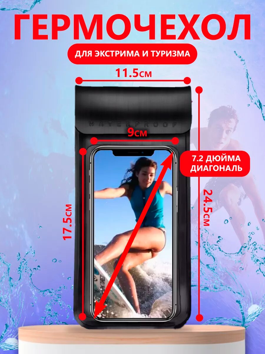 Водонепроницаемый чехол для телефона универсальный до 7.5" дюйма