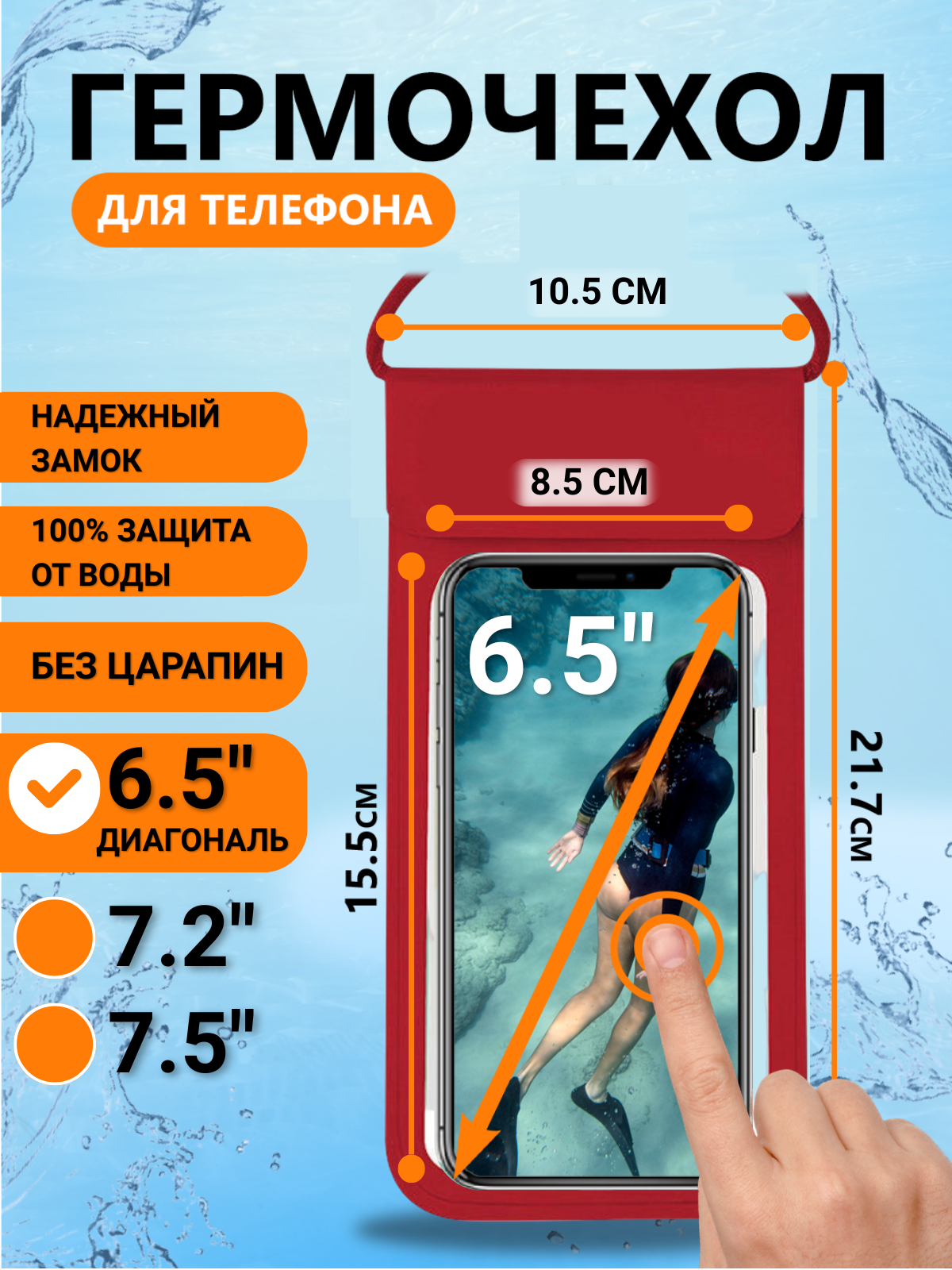 Водонепроницаемый чехол для телефона под водой на шею, до 6.5" дюйма
