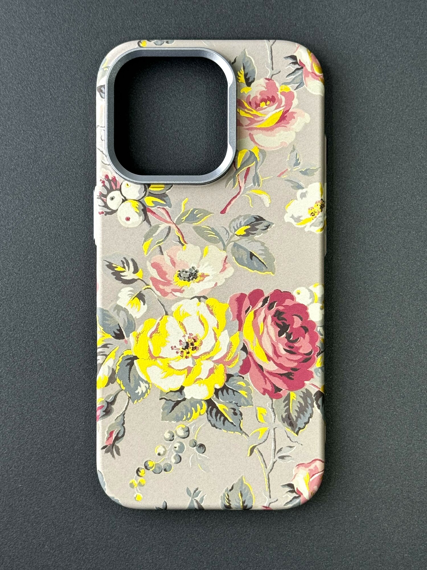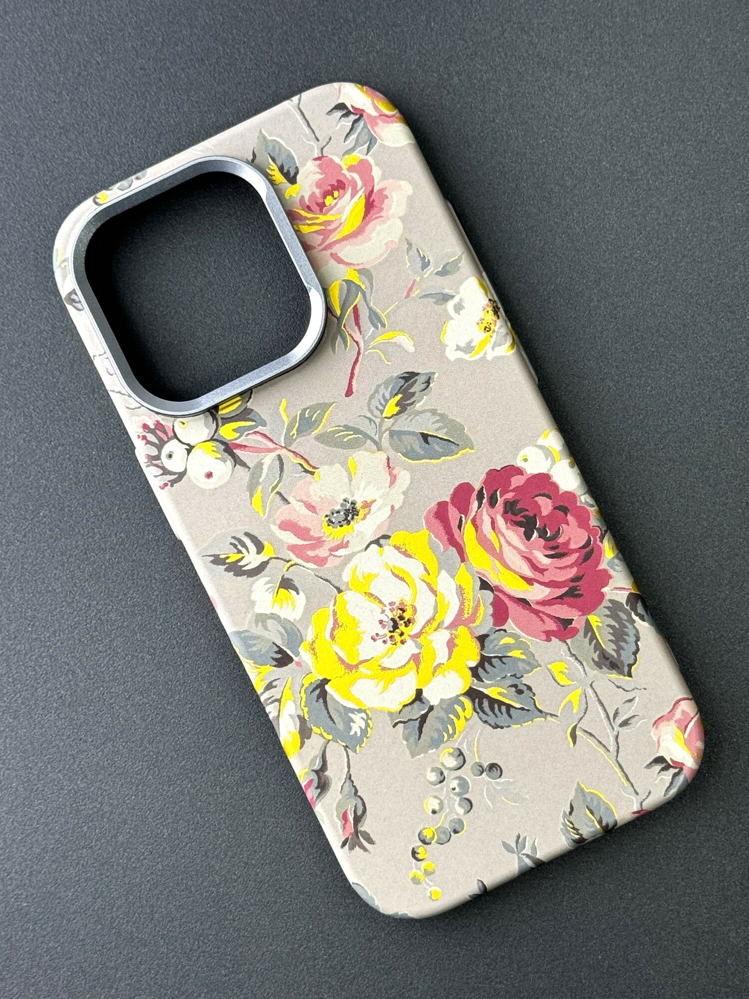 Чехол на IPhone 16 Pro с MAGSAFE из ударопрочного пластика с цветами и защитой камеры бежевый интересное: