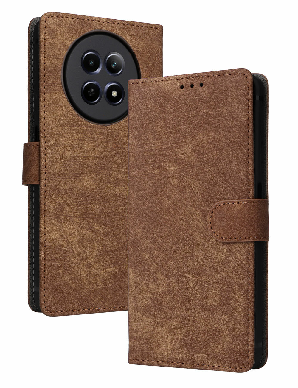 Чехол книжка для Realme 12 (5G) с магнитом и отделением под карты / Реалми 12 5G (коричневая)