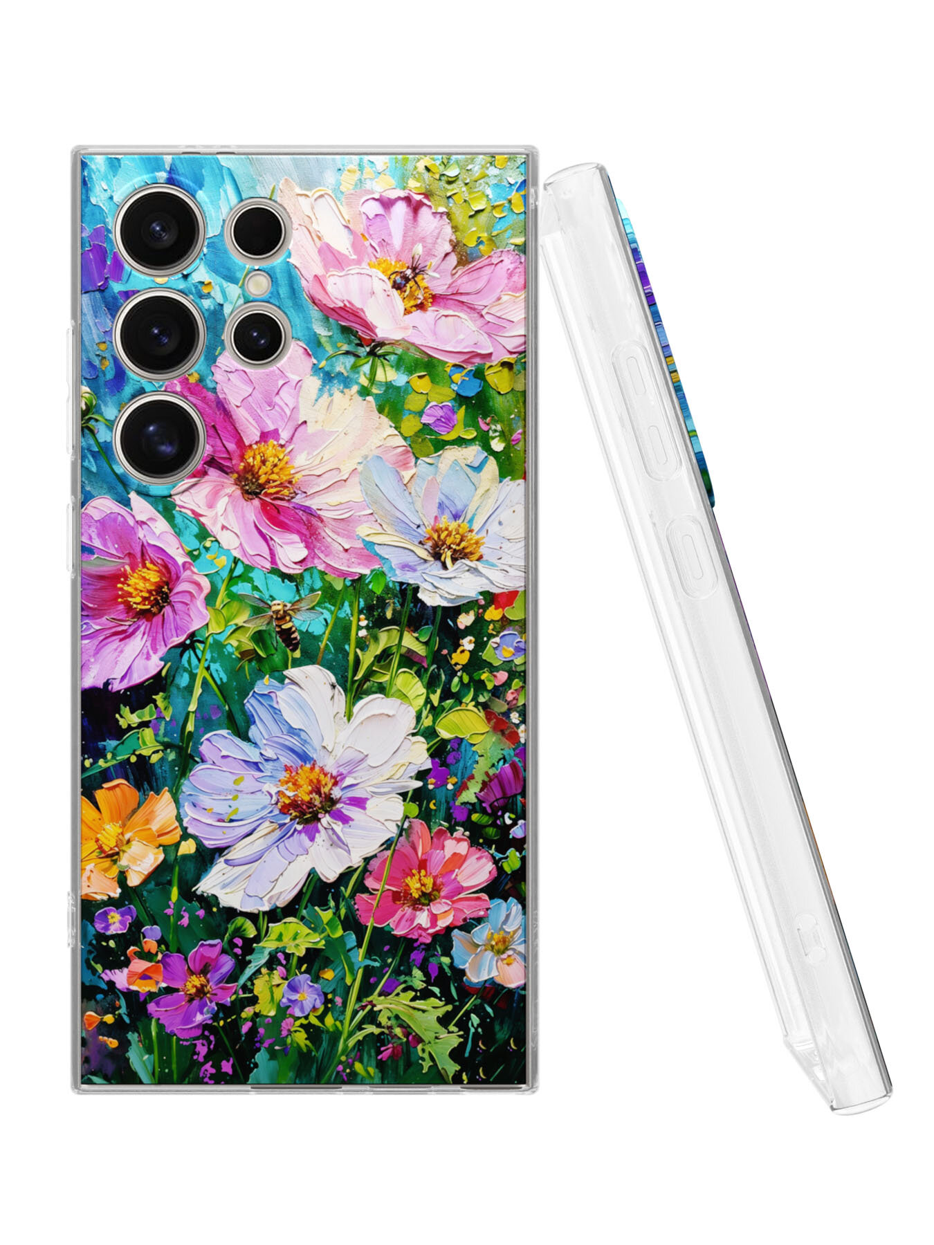 Силиконовый чехол Mcover для Galaxy S24 Ultra (Галакси С24 Ультра), Акварельные цветы
