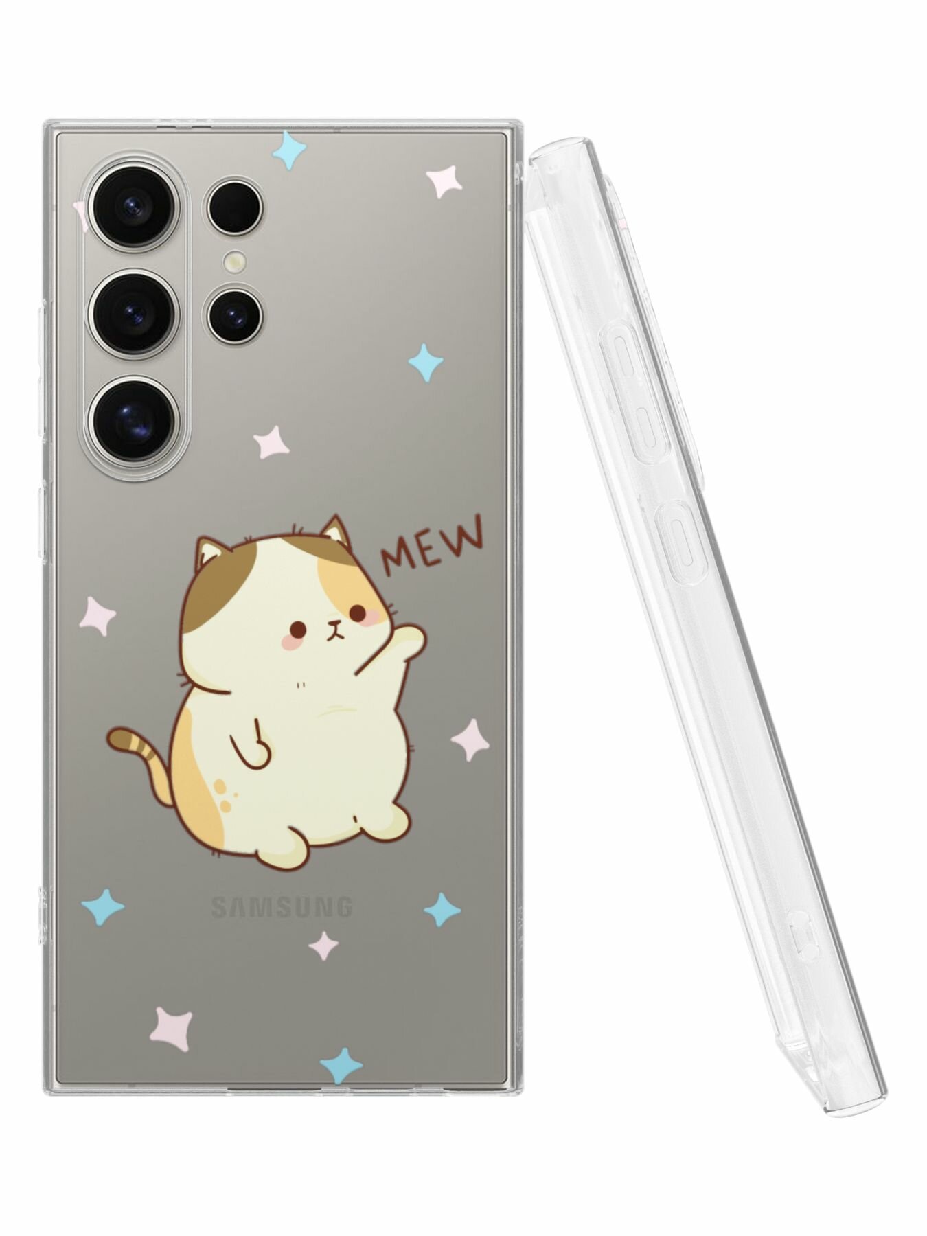 СохранитьСиликоновый чехол Mcover для Galaxy S24 Ultra (Галакси С24 Ультра), Mew интересное: