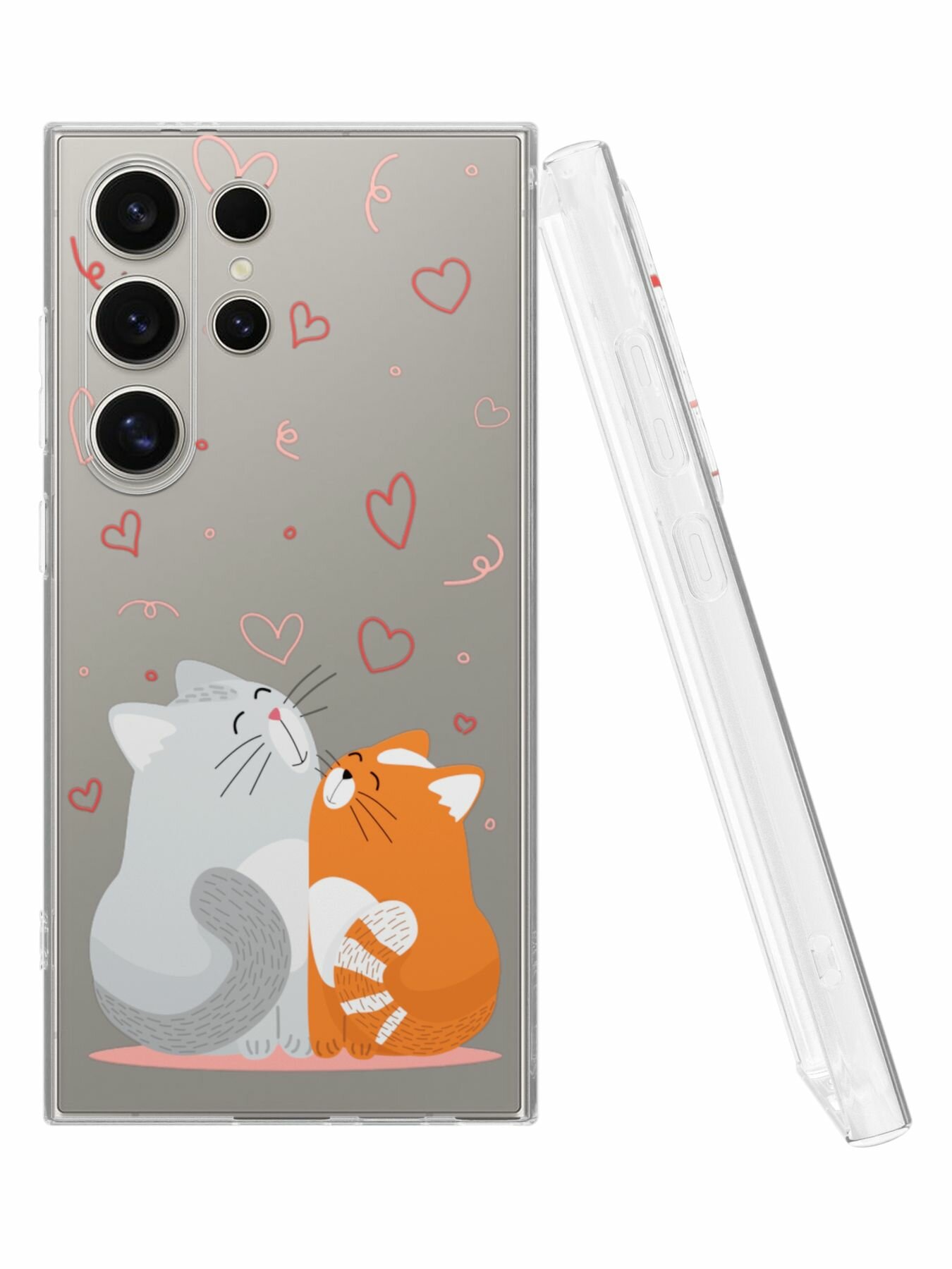 Силиконовый чехол Mcover для Galaxy S24 Ultra (Галакси С24 Ультра), Котик в сердцах
