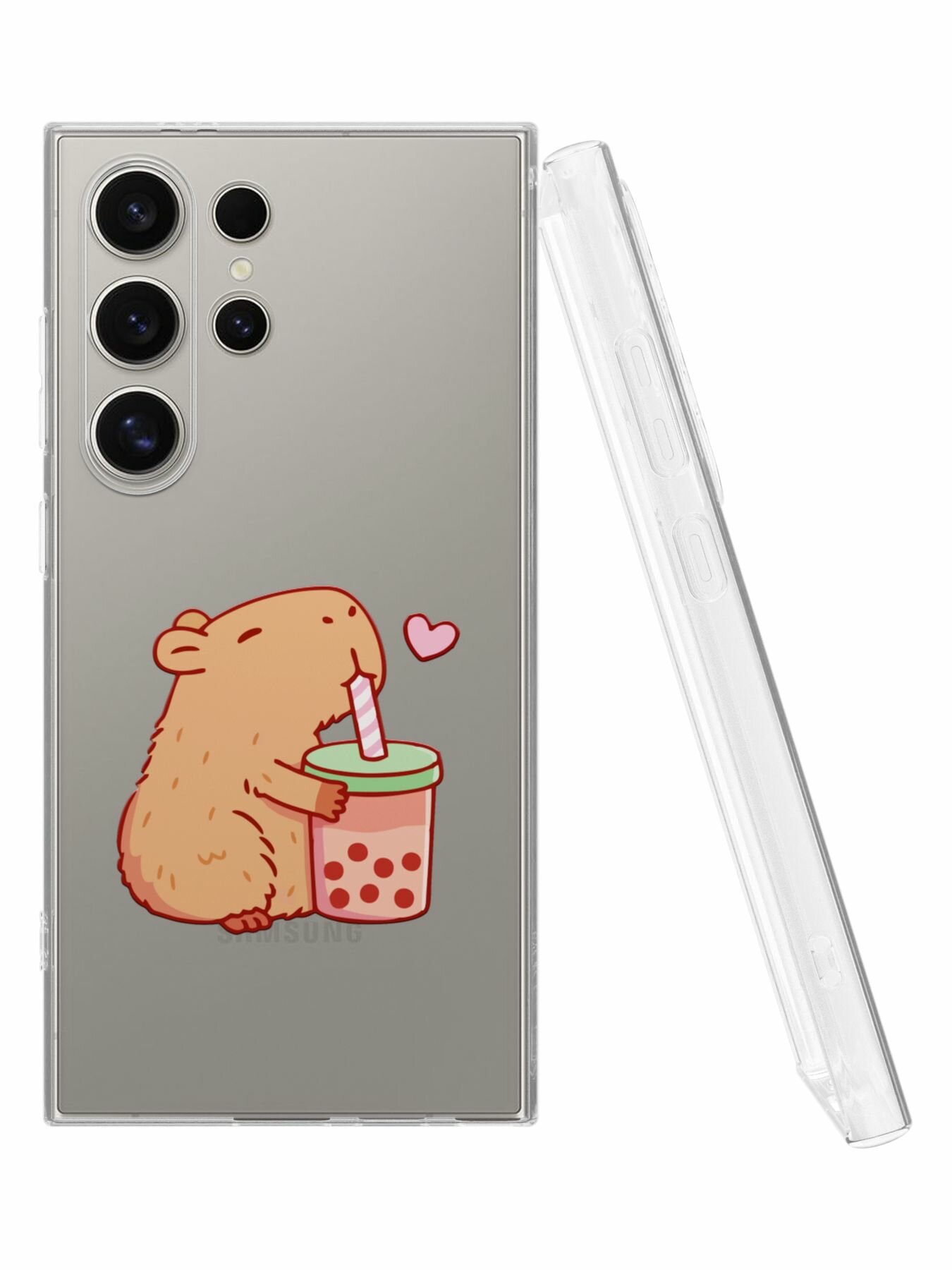 Купить Силиконовый чехол Mcover для Galaxy S24 Ultra (Галакси С24 Ультра), Капибара пьет чай
