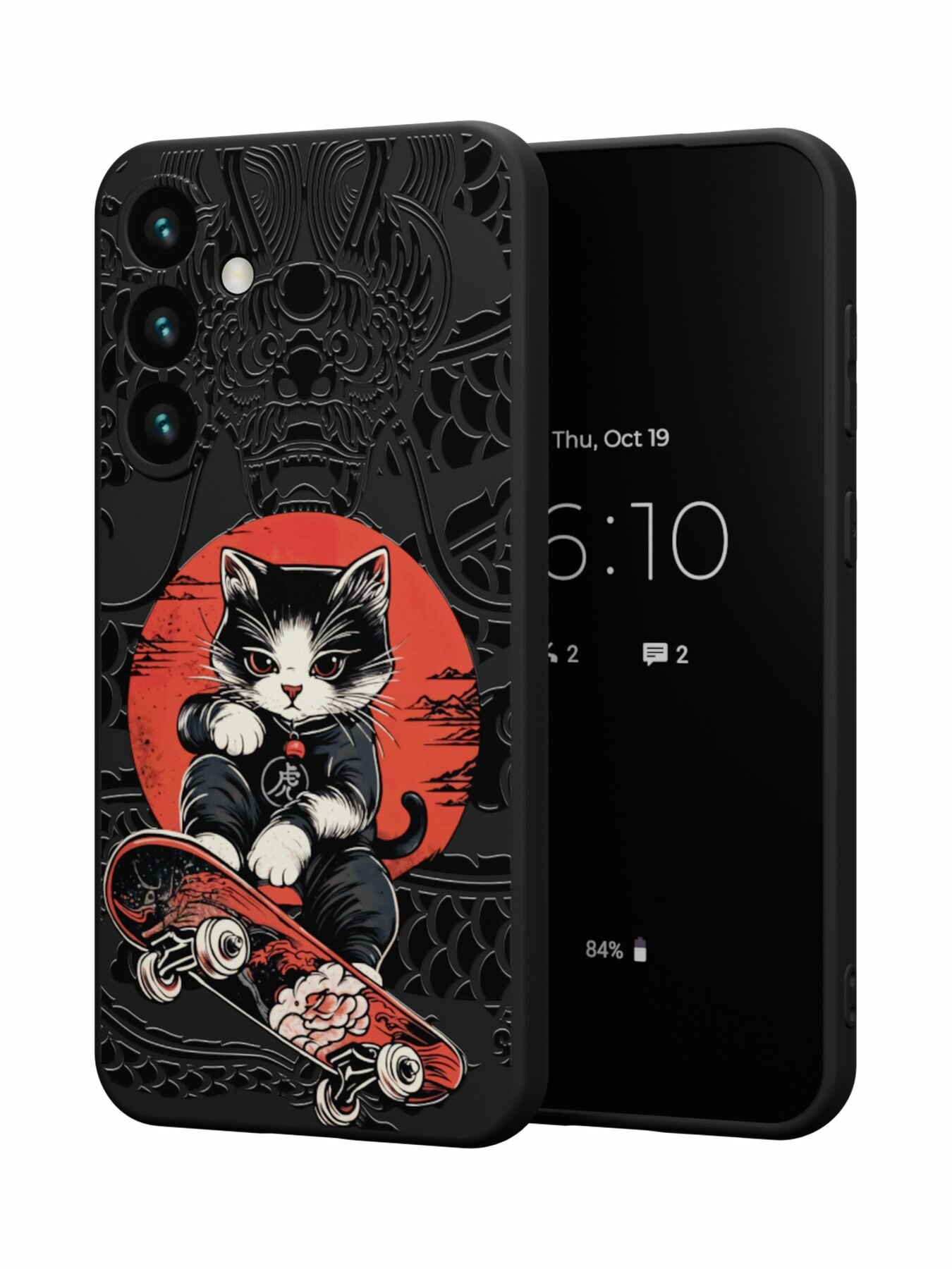 Купить Силиконовый чехол Mcover для Galaxy S24 Plus (Галакси С24 Плюс), Кот скейтер