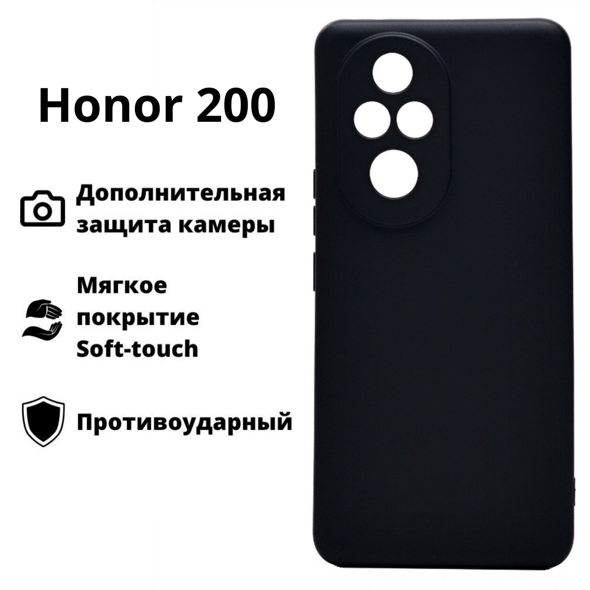 Купить Силиконовый чехол для Honor 200, черный (black) / чехол хонор 200