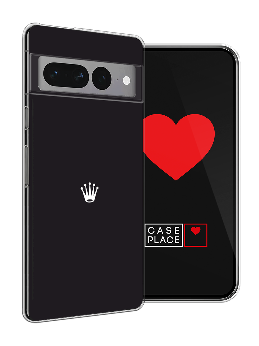 Купить Чехол на Google Pixel 7 Pro / Гугл Пиксель 7 Про с принтом Белая корона на черном фоне