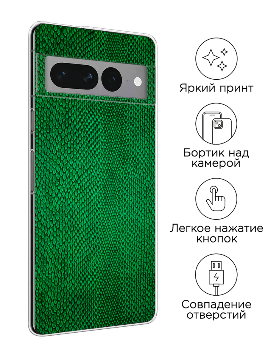 Чехол на Google Pixel 7 Pro / Гугл Пиксель 7 Про с принтом Зеленая кожа змеи