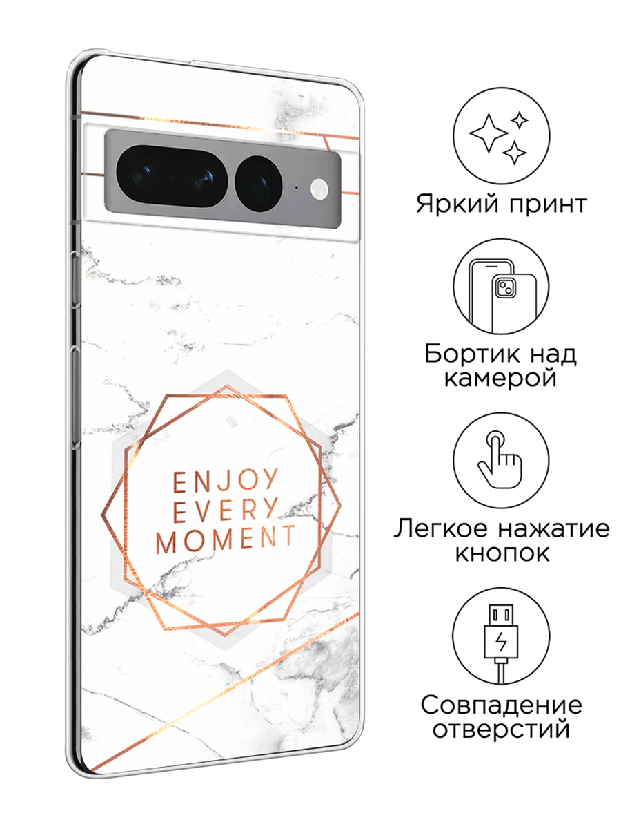 СохранитьЧехол на Google Pixel 7 Pro / Гугл Пиксель 7 Про с принтом Enjoy every moment мрамор интересное: