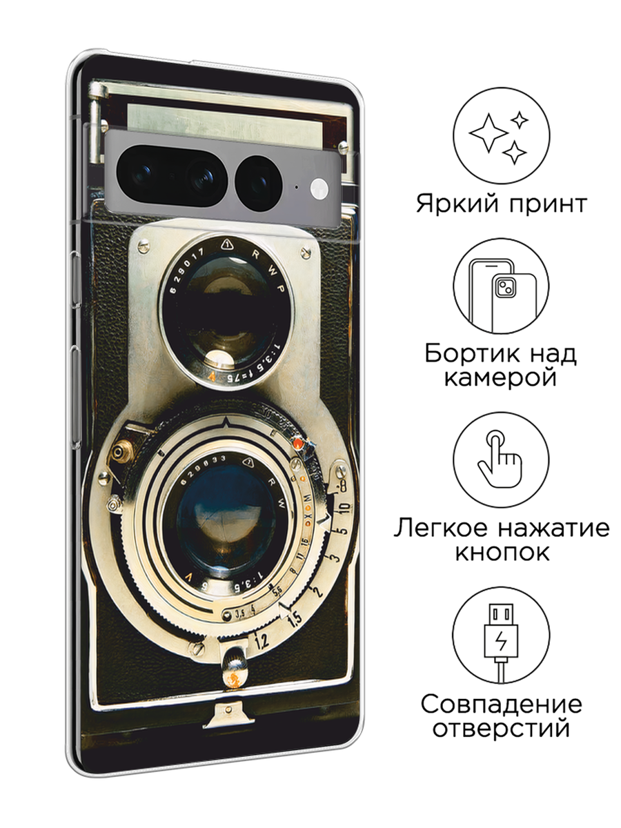 СохранитьЧехол на Google Pixel 7 Pro / Гугл Пиксель 7 Про с принтом Старинный фотоаппарат интересное:
