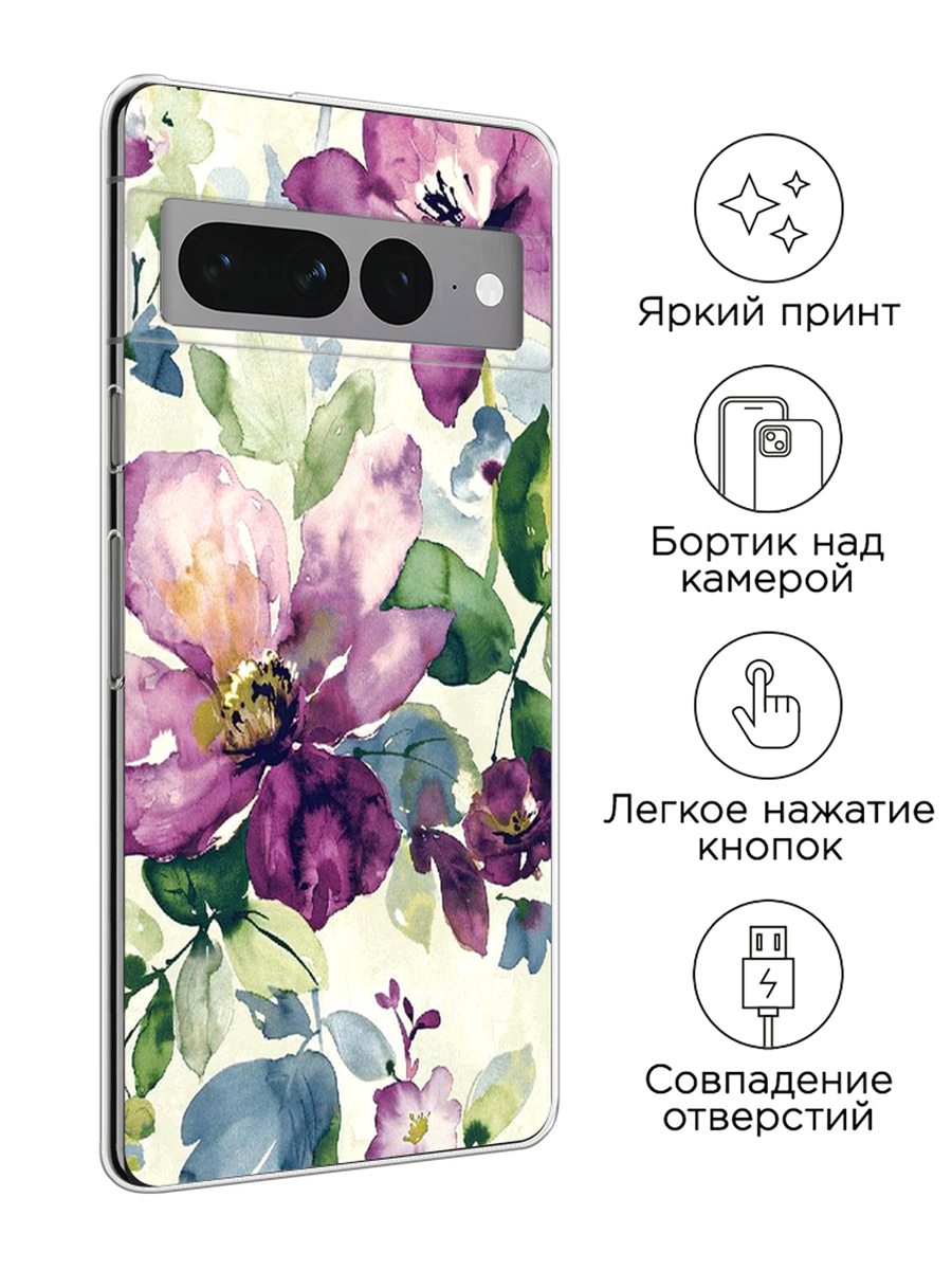 СохранитьЧехол на Google Pixel 7 Pro / Гугл Пиксель 7 Про с принтом Сиреневые цветы-акварель интересное: