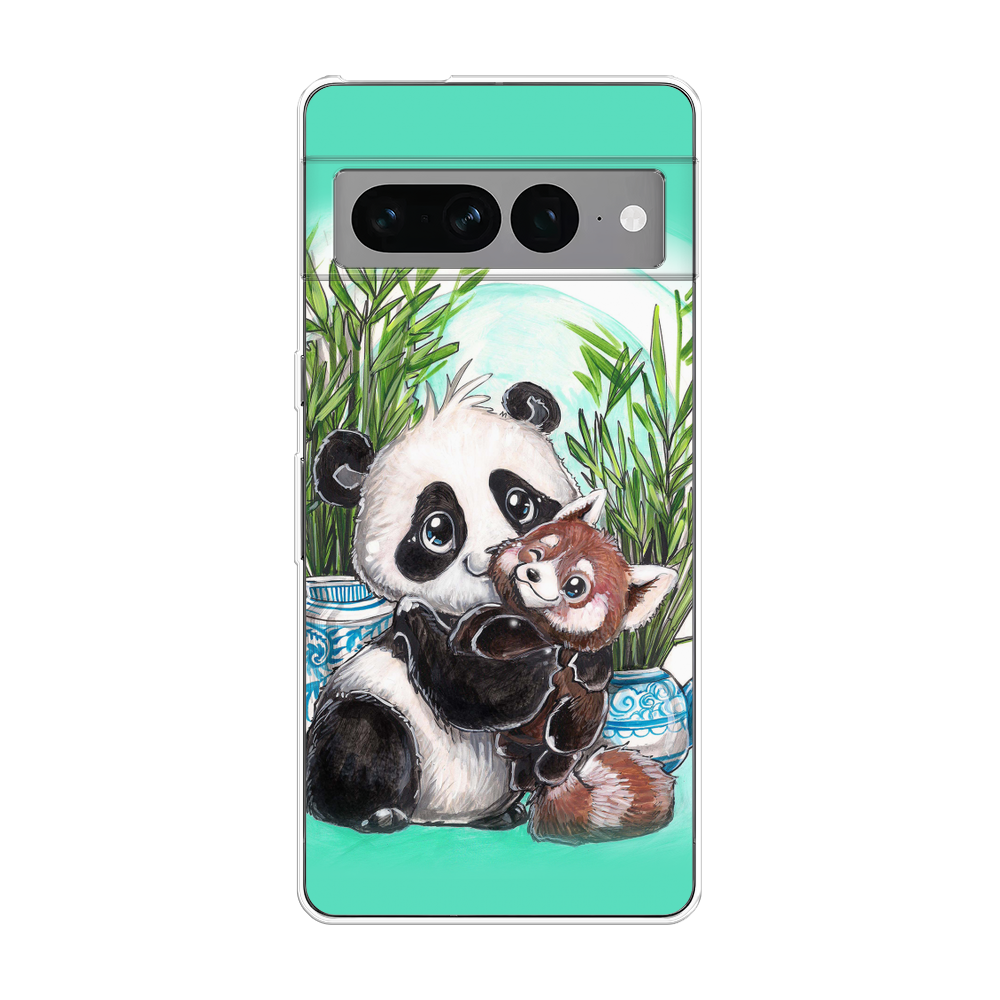Чехол на Google Pixel 7 Pro / Гугл Пиксель 7 Про с принтом Семейство панды