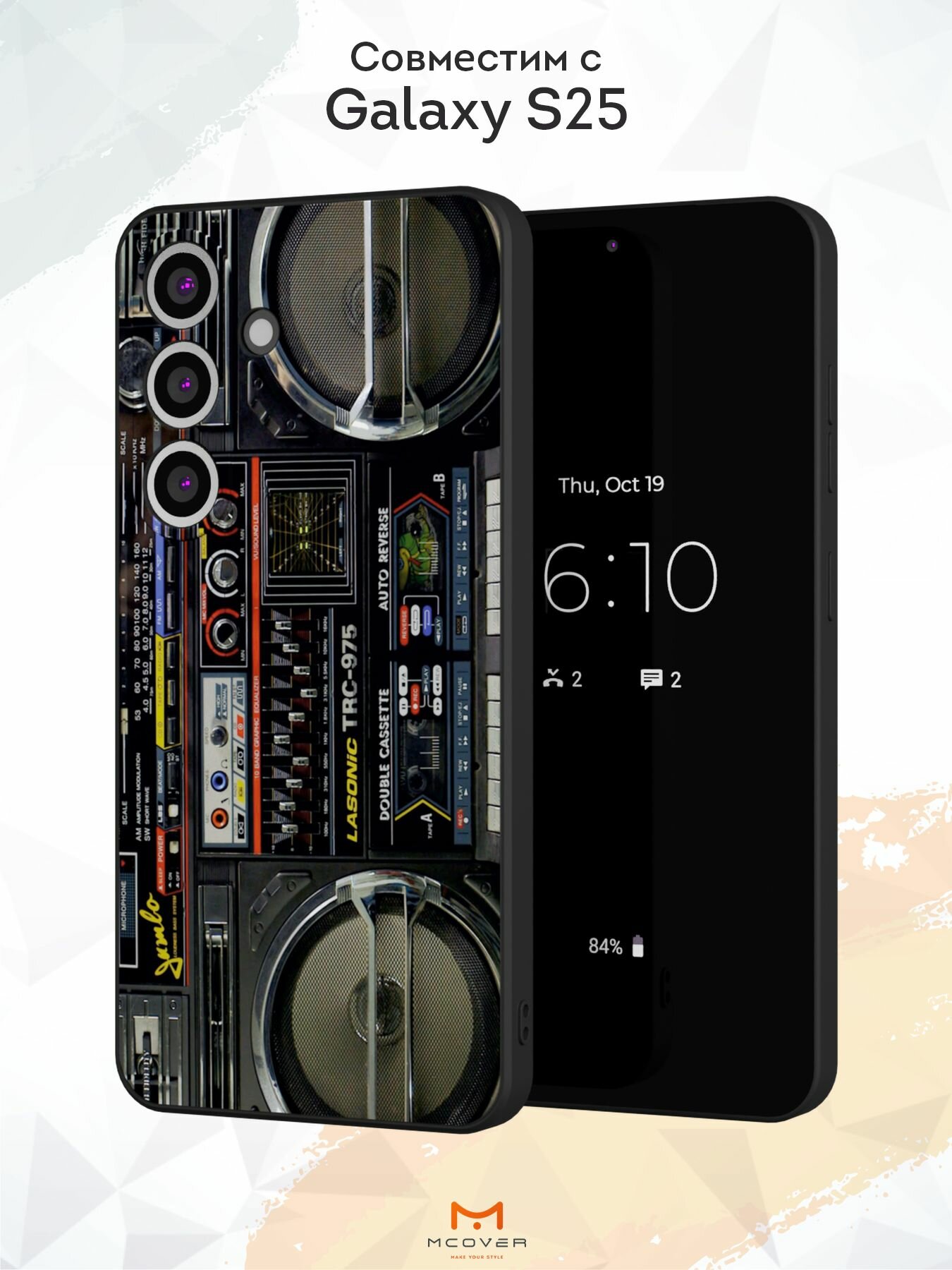 СохранитьСиликоновый чехол Mcover, на Galaxy S25, с принтом Магнитофон, черный, с защитой камеры интересное: