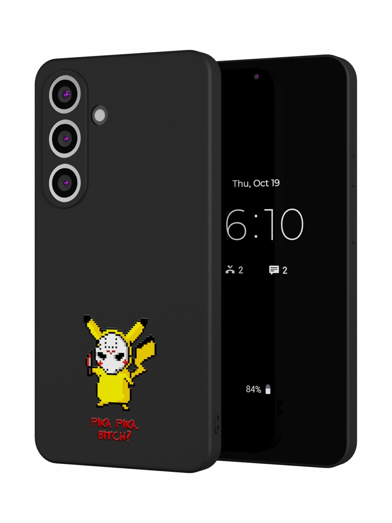 Купить Силиконовый чехол Mcover, на Galaxy S25, с принтом Pika pika, черный, с защитой камеры