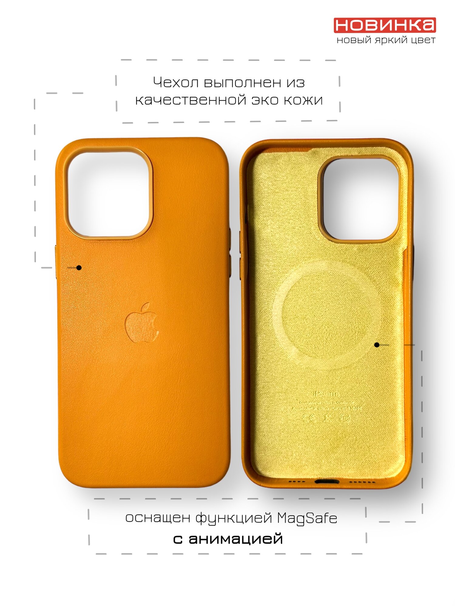 СохранитьЧехол кожаный для iPhone 14 Pro, Leather Case, MagSafe, цвет ярко - оранжевый интересное: