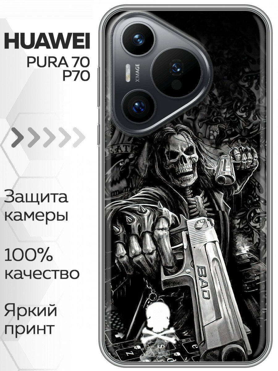 Купить Чехол для Huawei Pura 70 с принтом Скелет и череп на Хуавей Пура 70