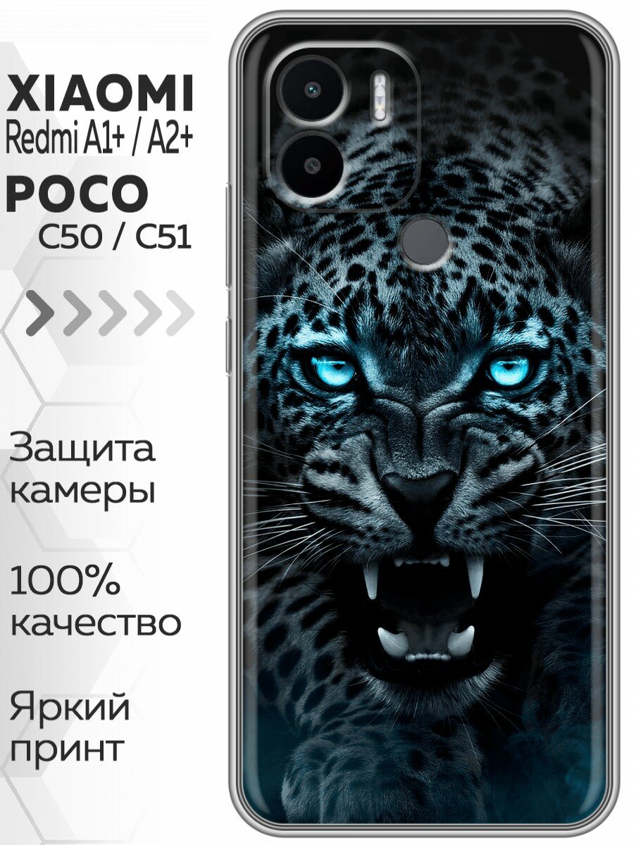 СохранитьЧехол для Xiaomi Redmi A1+, Redmi A2+, Poco C51 с принтом темный леопард на Сяоми Редми А1+, Редми А2+, Поко С51 интересное: