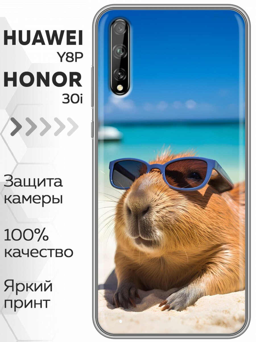 Купить Чехол для Huawei Y8P, Honor 30i с принтом Смешные капибары на Хуавей У8Р Хонор 30