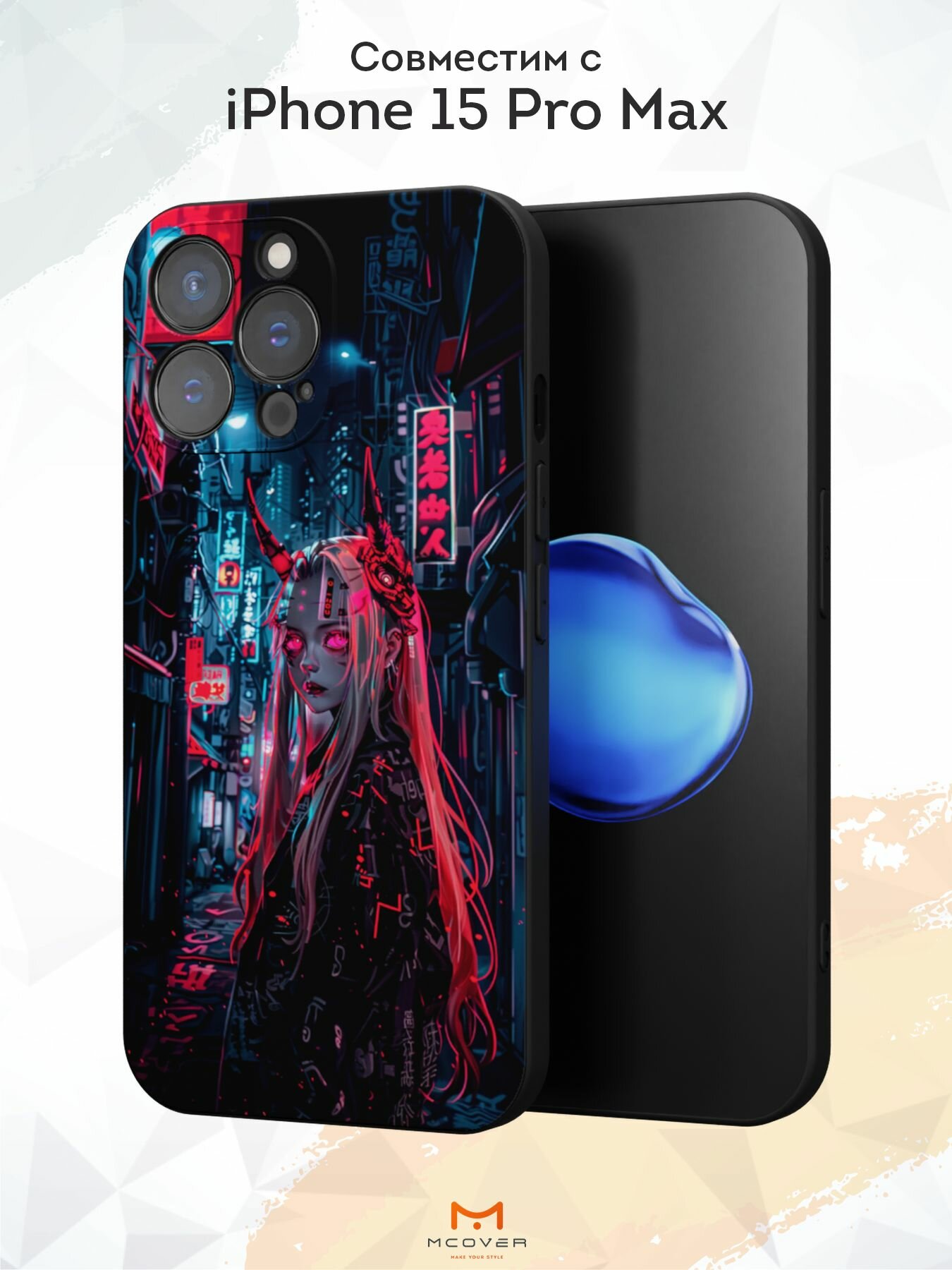 Купить Чехол Mcover с рисунком Кибер Тян на iPhone 15 Pro Max, силиконовый, матовый, защита камеры