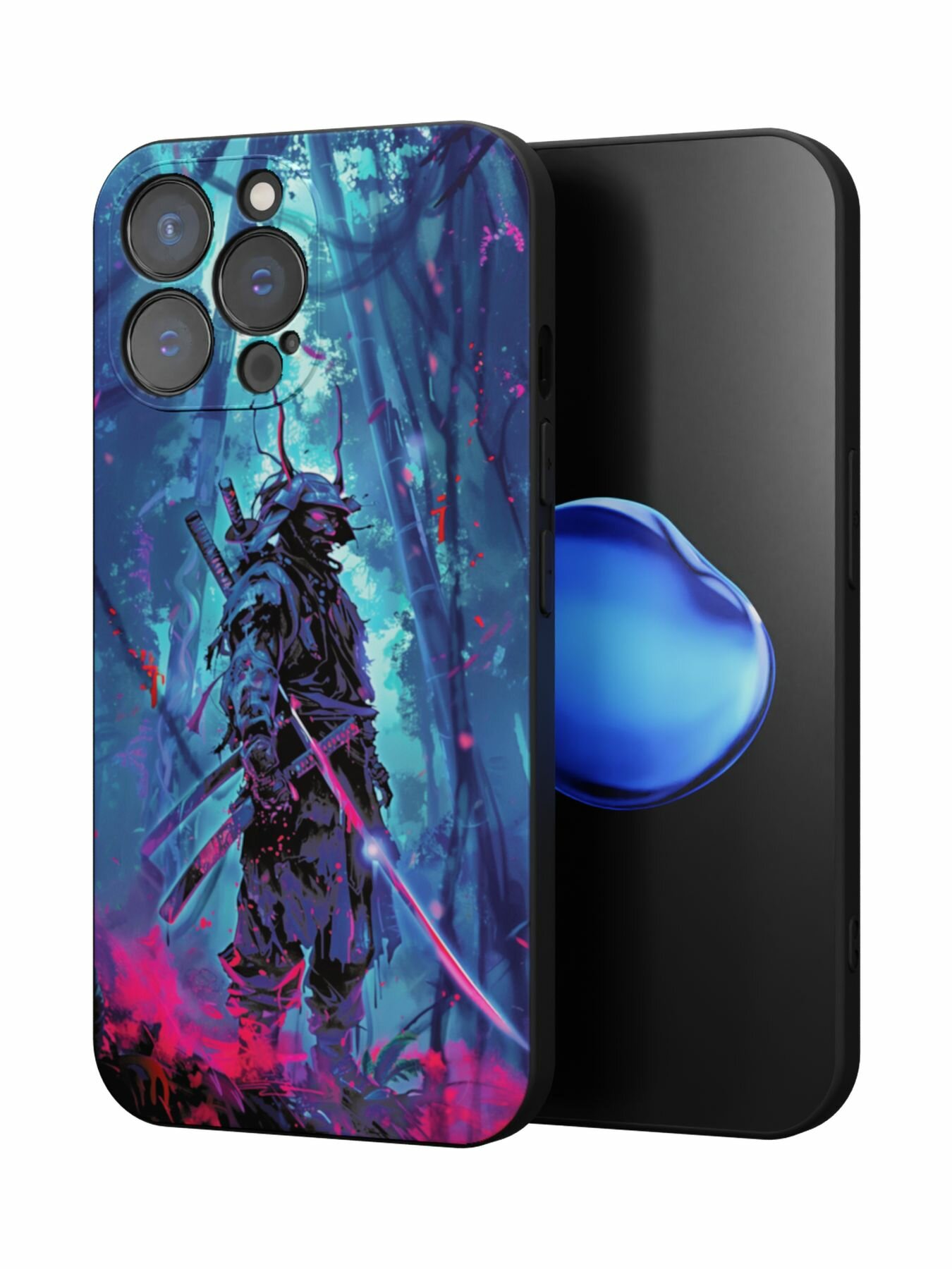 Чехол Mcover с рисунком Самурай на iPhone 15 Pro Max, силиконовый, матовый, защита камеры