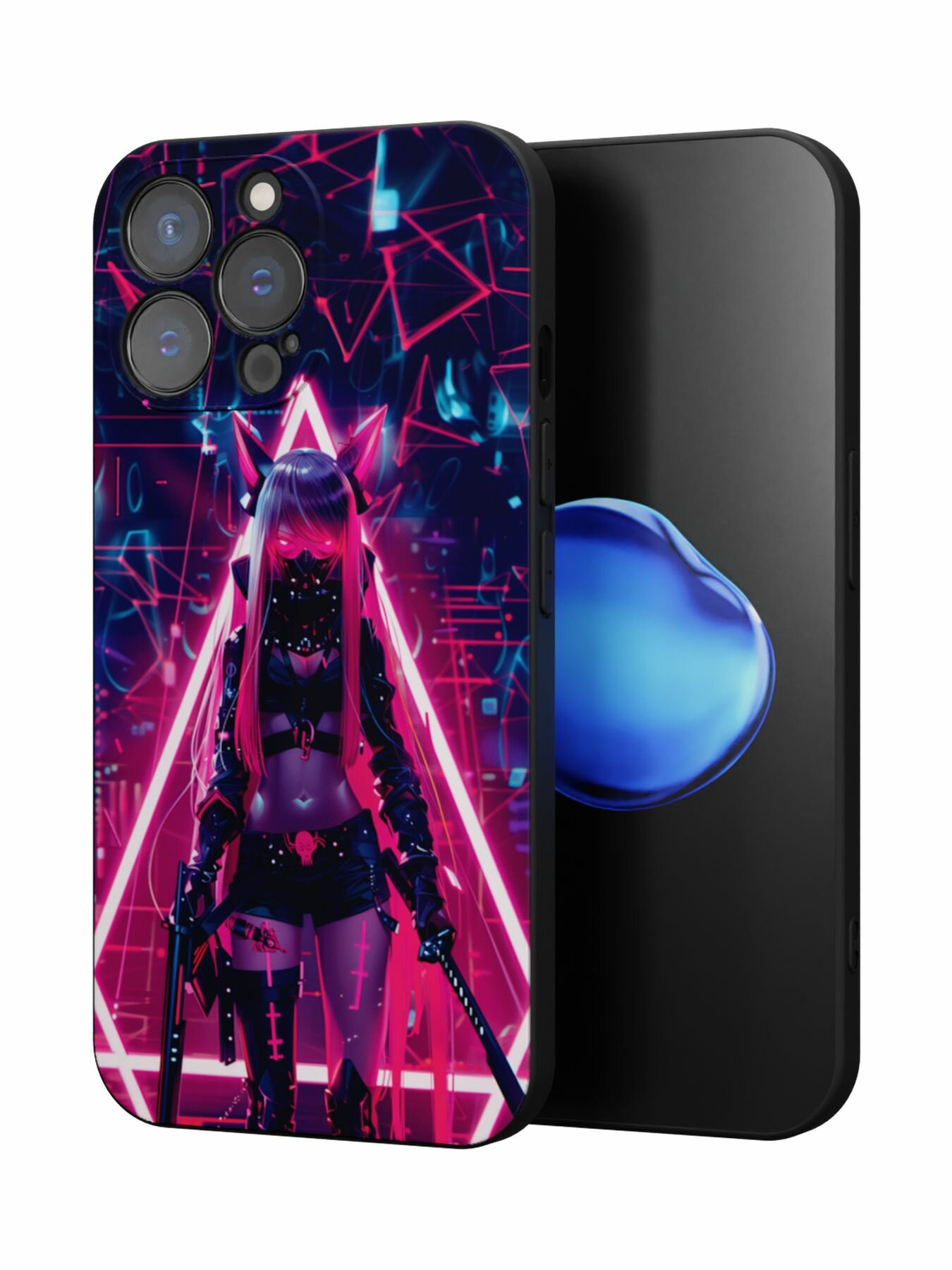 СохранитьЧехол Mcover с рисунком Киберо Неко на iPhone 15 Pro Max, силиконовый, матовый, защита камеры интересное:
