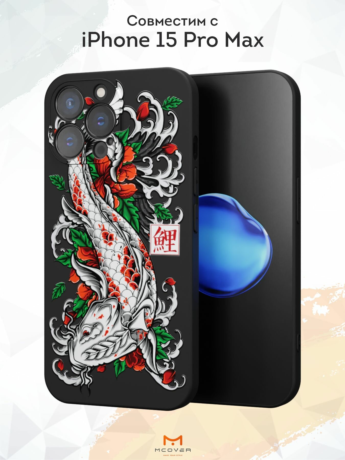 Купить Чехол Mcover с рисунком Карп Кои на iPhone 15 Pro Max, силиконовый, матовый, защита камеры