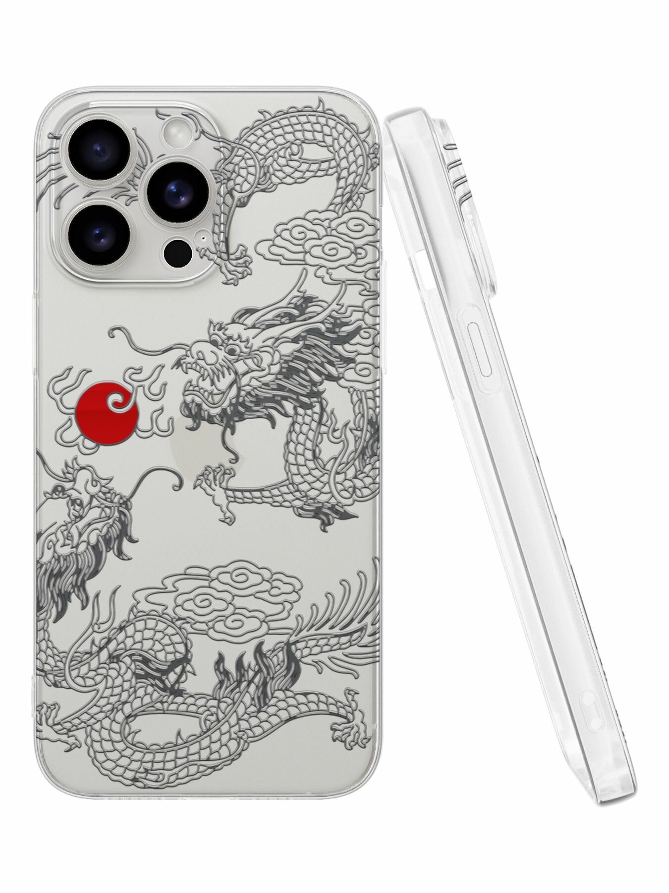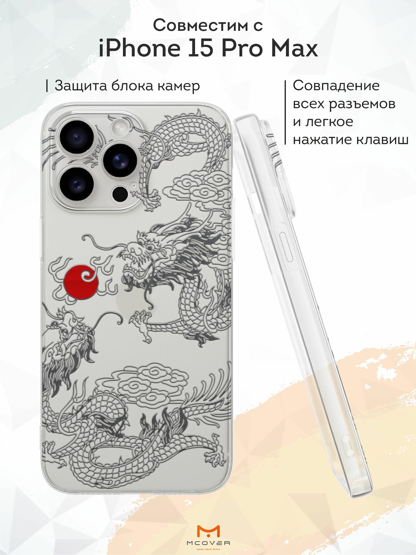 Купить Чехол Mcover с рисунком Японский дракон инь / аниме на iPhone 15 Pro Max, силикон, прозрачный, защита камеры