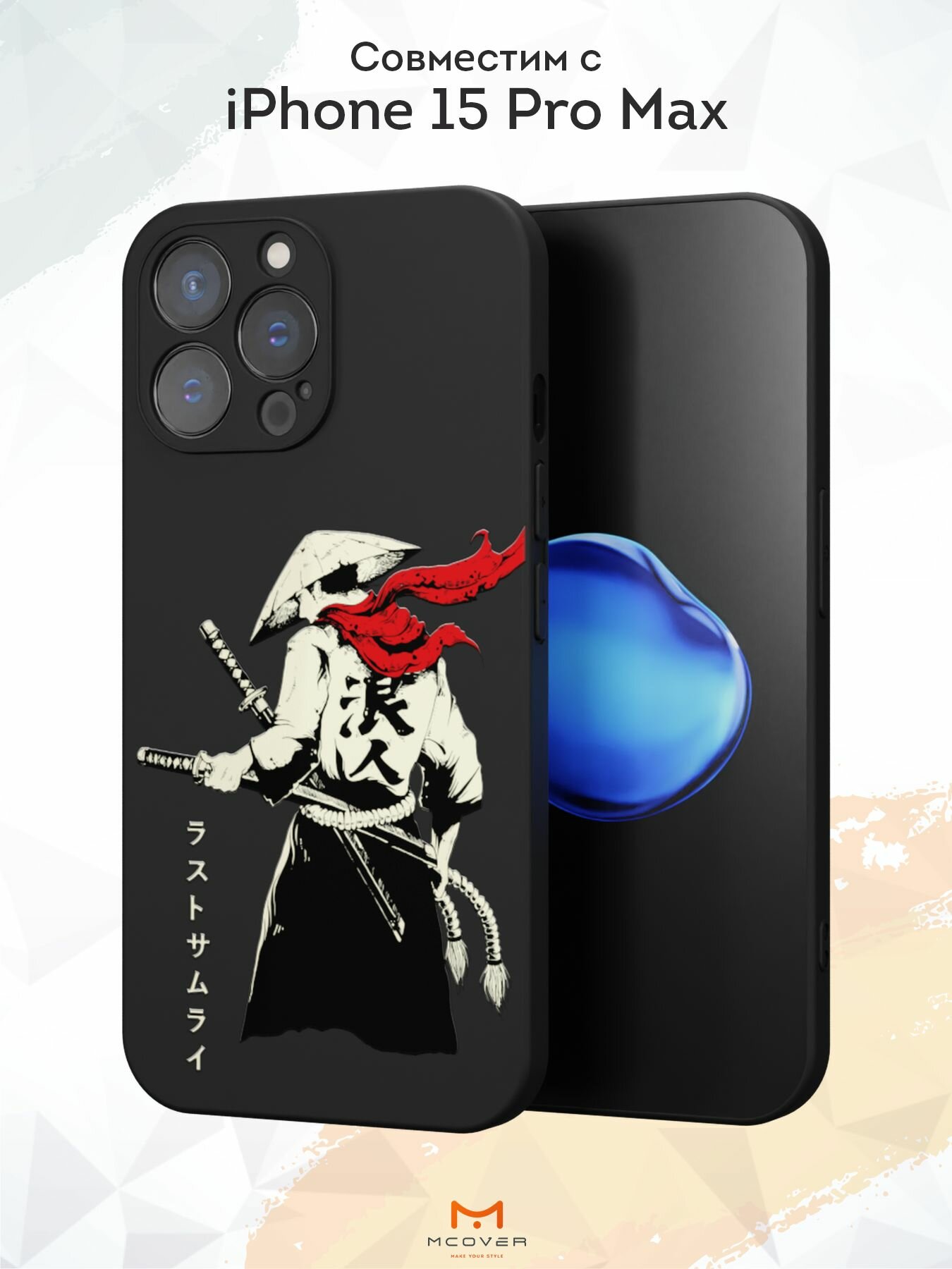 Купить Чехол Mcover с рисунком Самурай на iPhone 15 Pro Max, силиконовый, матовый, защита камеры
