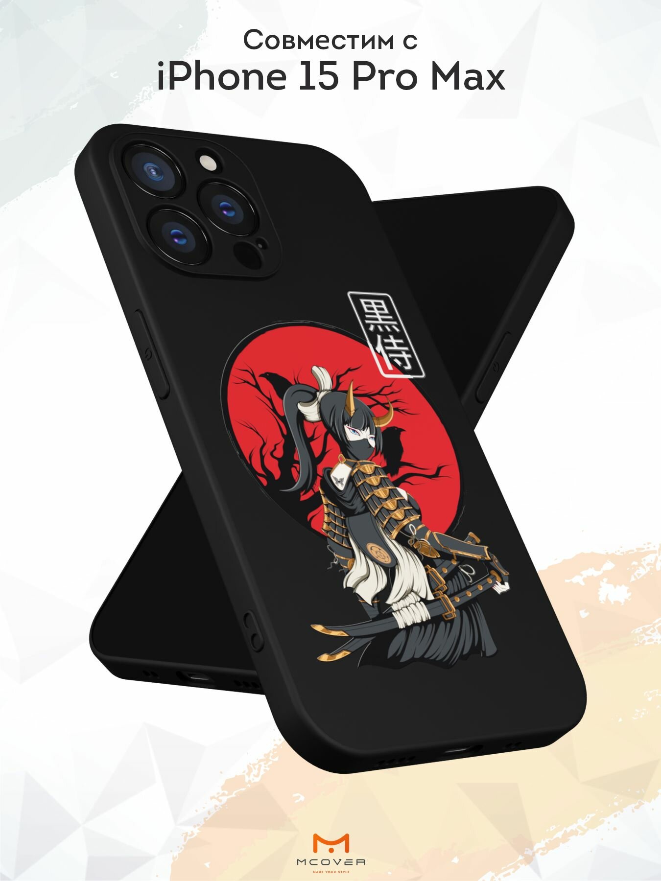 Чехол Mcover с рисунком Самурай на iPhone 15 Pro Max, силиконовый, матовый, защита камеры