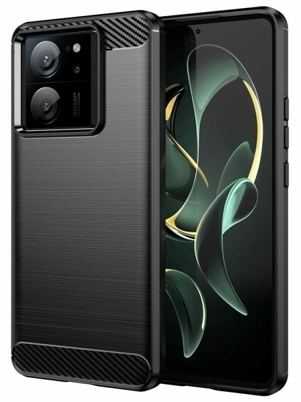 Купить Чехол на Xiaomi 13T Pro силиконовый карбон сталь черный