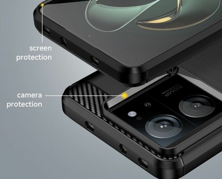 Чехол на Xiaomi 13T Pro силиконовый карбон сталь черный интересное: