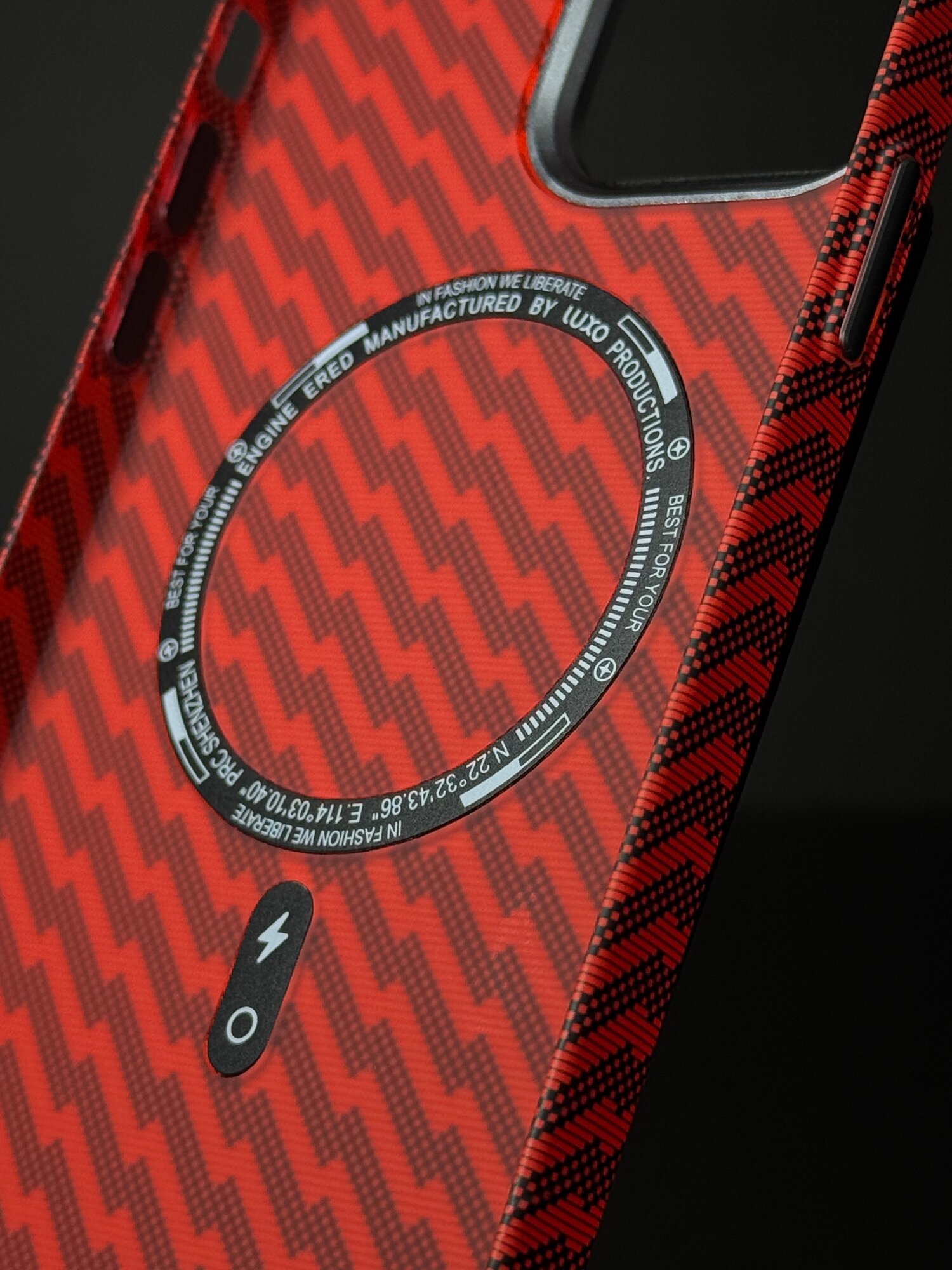 СохранитьЧехол Айфон 14 Про Макс с МагСейф Кевлар / чехол iPhone 14 Pro Max с MagSafe LUXO Life+, красный с узором, карбоновый интересное:
