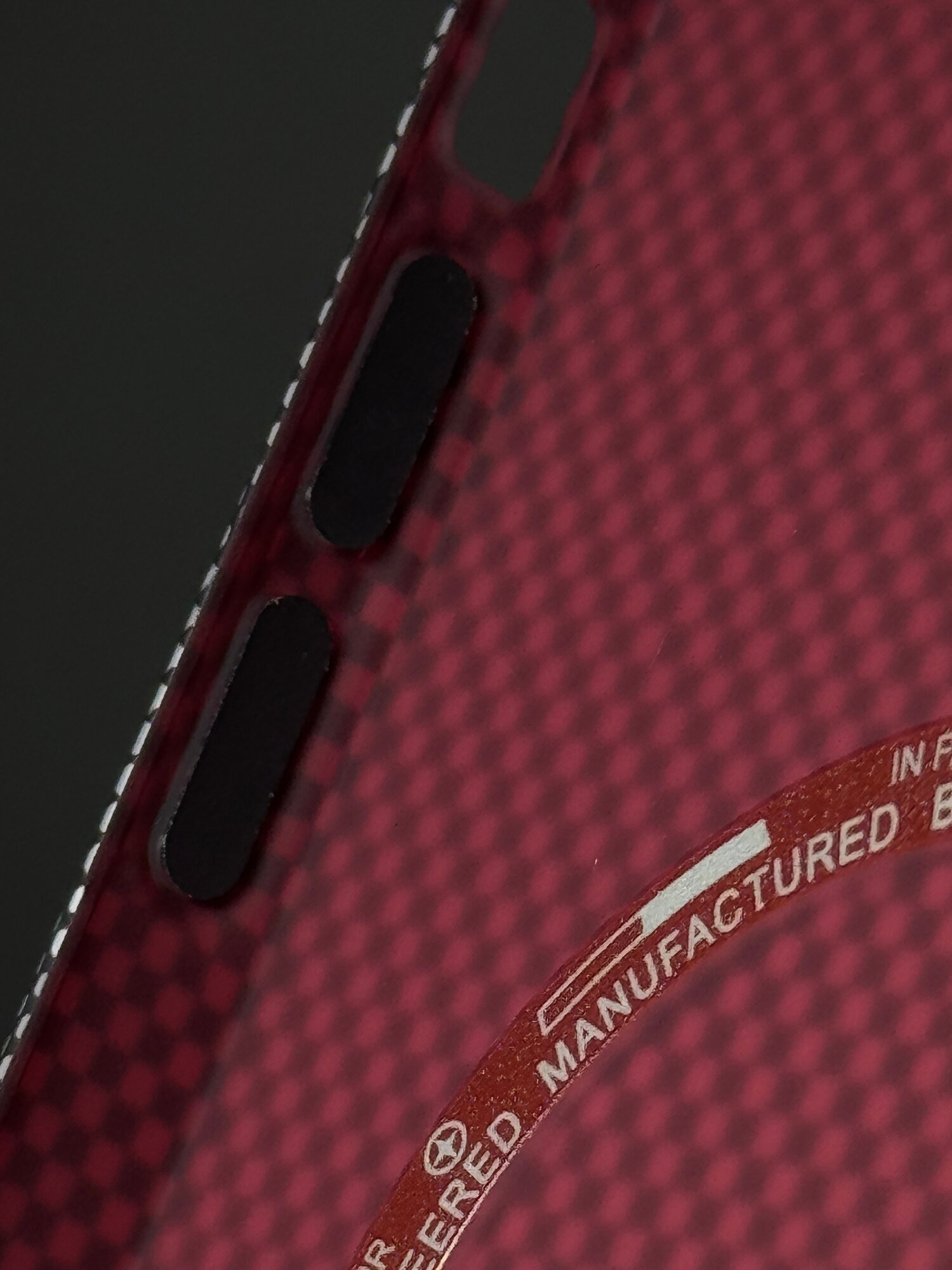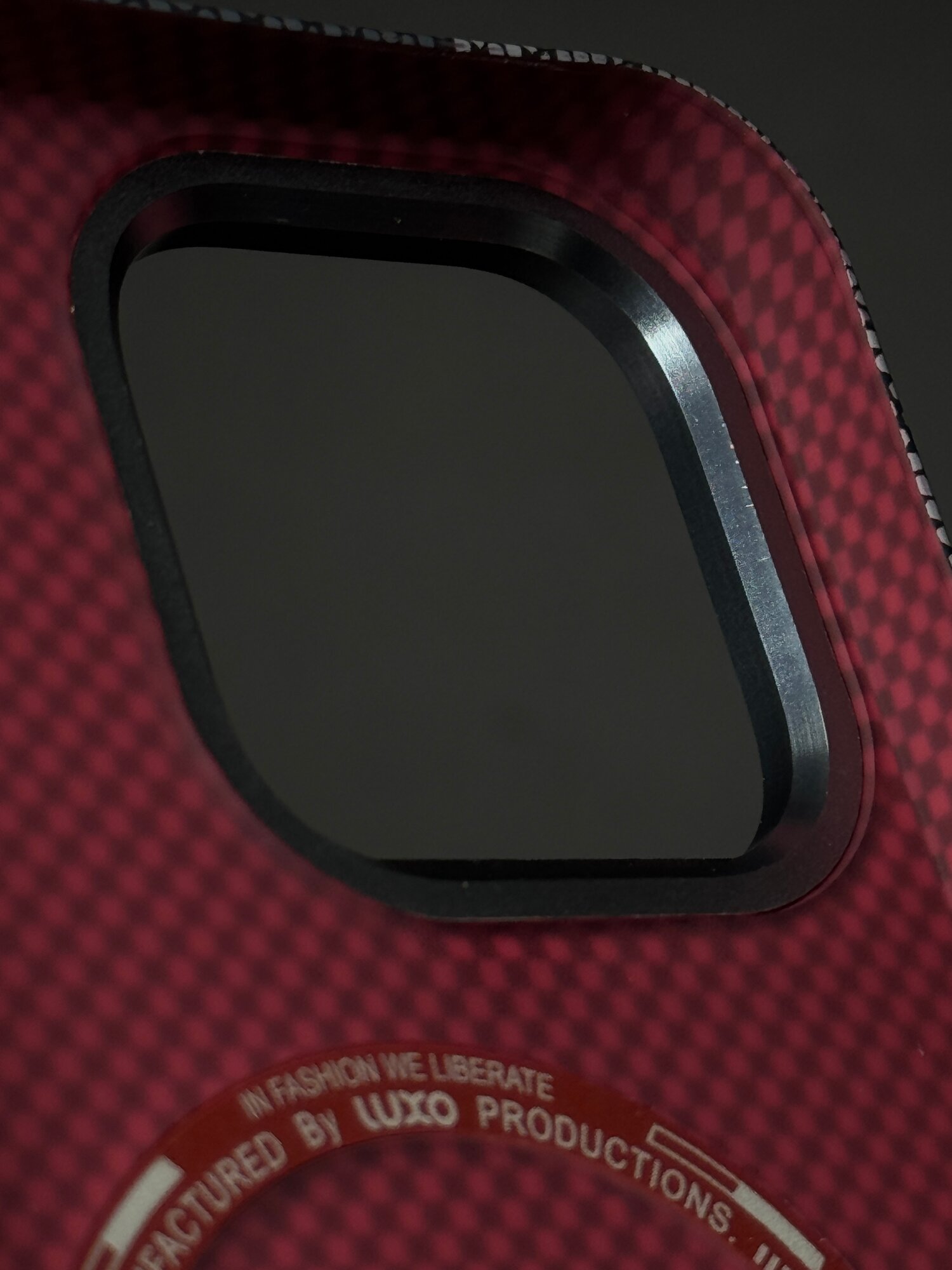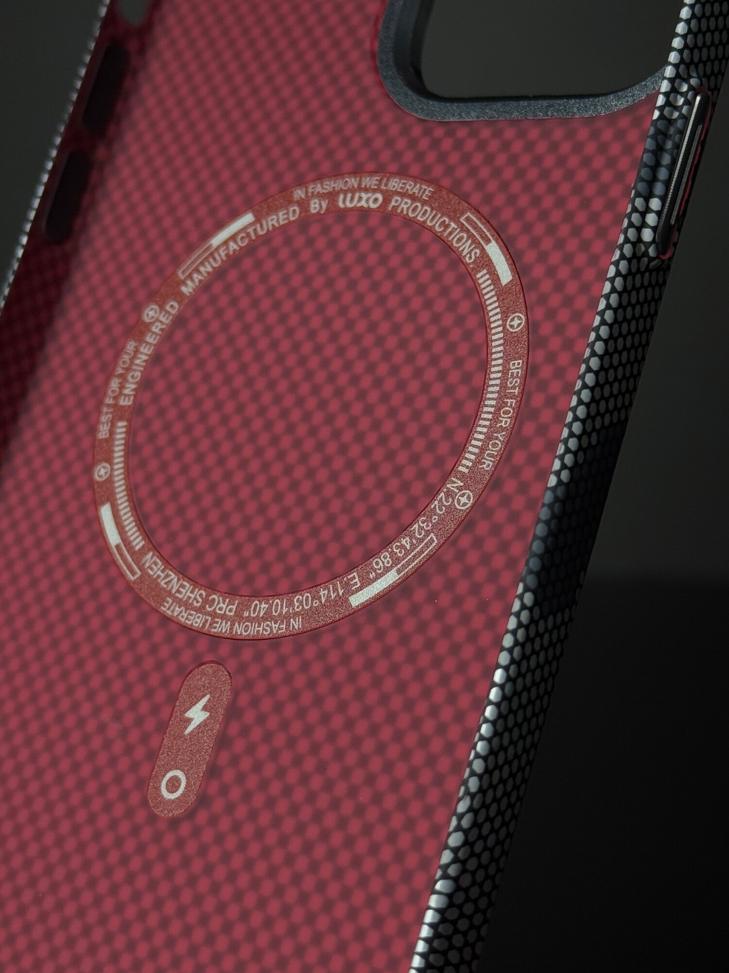 Чехол Айфон 14 Про Макс с МагСейф Кевлар / чехол iPhone 14 Pro Max с MagSafe LUXO Life+, красный с узором, карбоновый