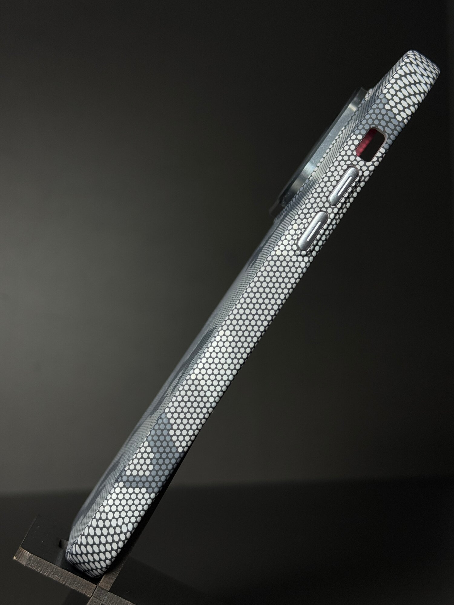 Купить Чехол Айфон 14 Про Макс с МагСейф из Кевлара / чехол iPhone 14 Pro Max с MagSafe Kevlar LUXO Life+ / MOSBROS, Серый камуфляж, карбоновый