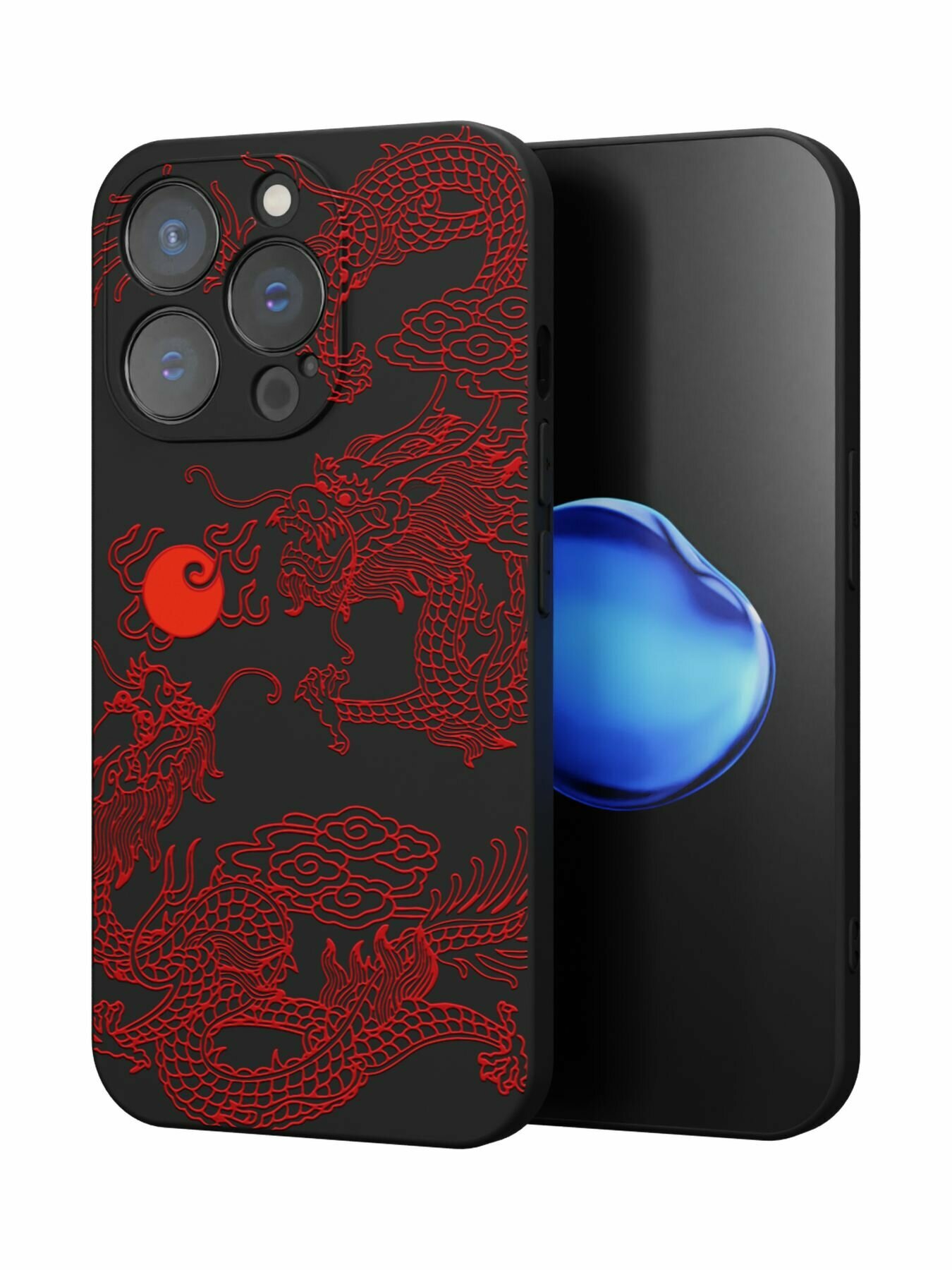 СохранитьЧехол Mcover с рисунком Японский дракон янь / аниме на iPhone 15 Pro, силиконовый, матовый, защита камеры интересное: