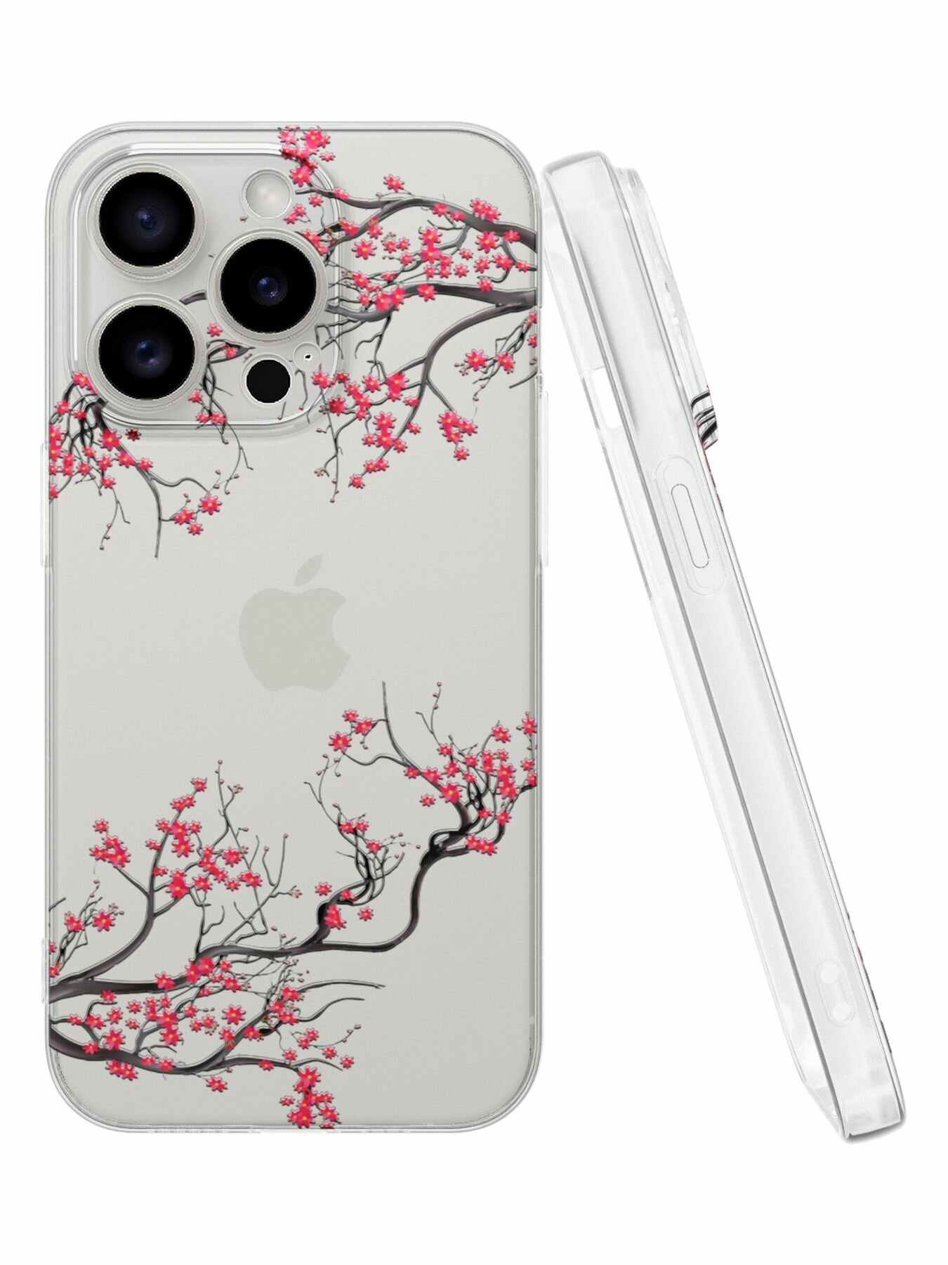 Купить Чехол Mcover с рисунком Сакура цветущая на iPhone 15 Pro, силикон, прозрачный, защита камеры
