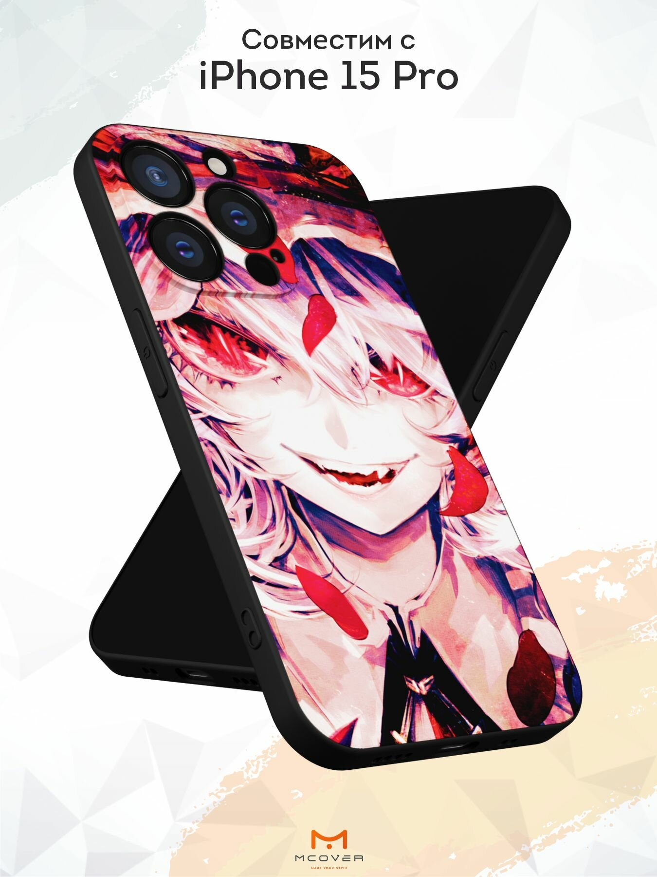 Чехол Mcover с рисунком Красно-белые глаза / аниме на iPhone 15 Pro, силиконовый, матовый, защита камеры