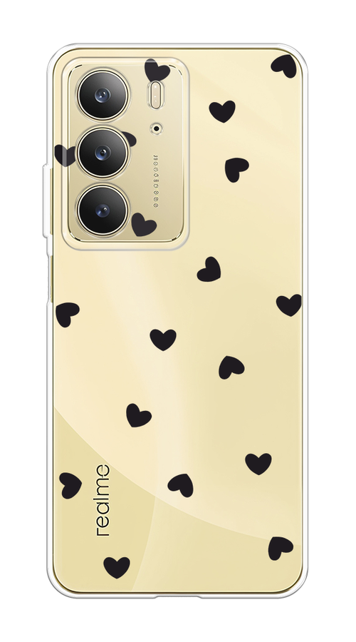 Купить Чехол на Realme C75 4G / Реалми C75 4G с принтом Маленькие чёрные сердечки, прозрачный