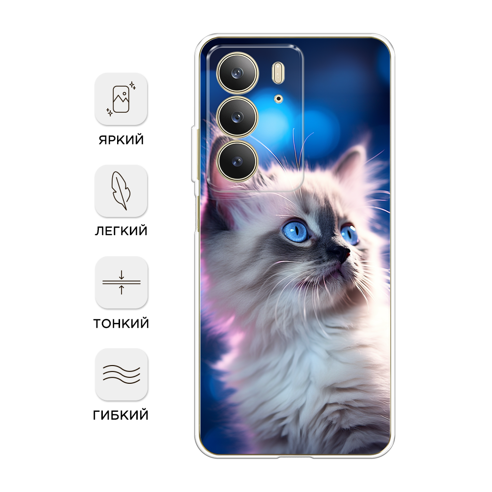 СохранитьЧехол на Realme C75 4G / Реалми C75 4G с принтом Голубоглазый котёнок интересное: