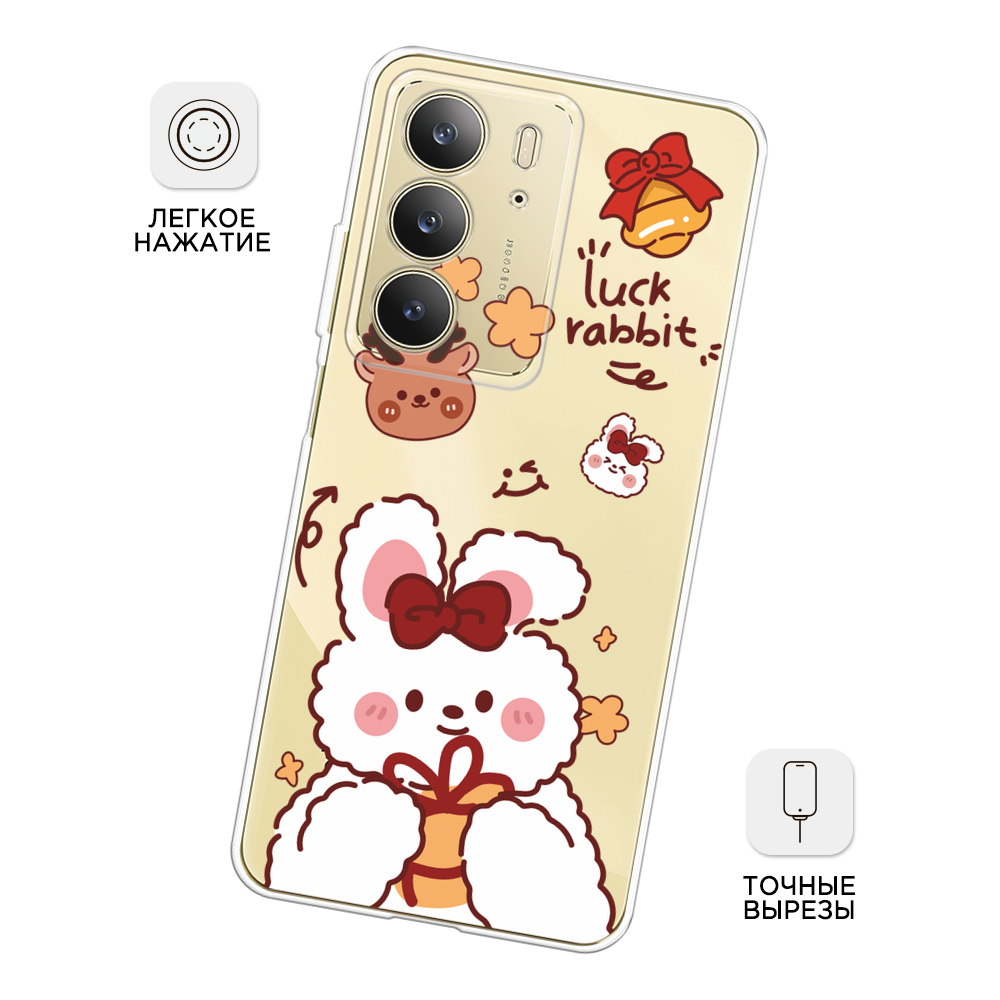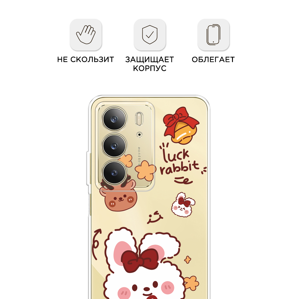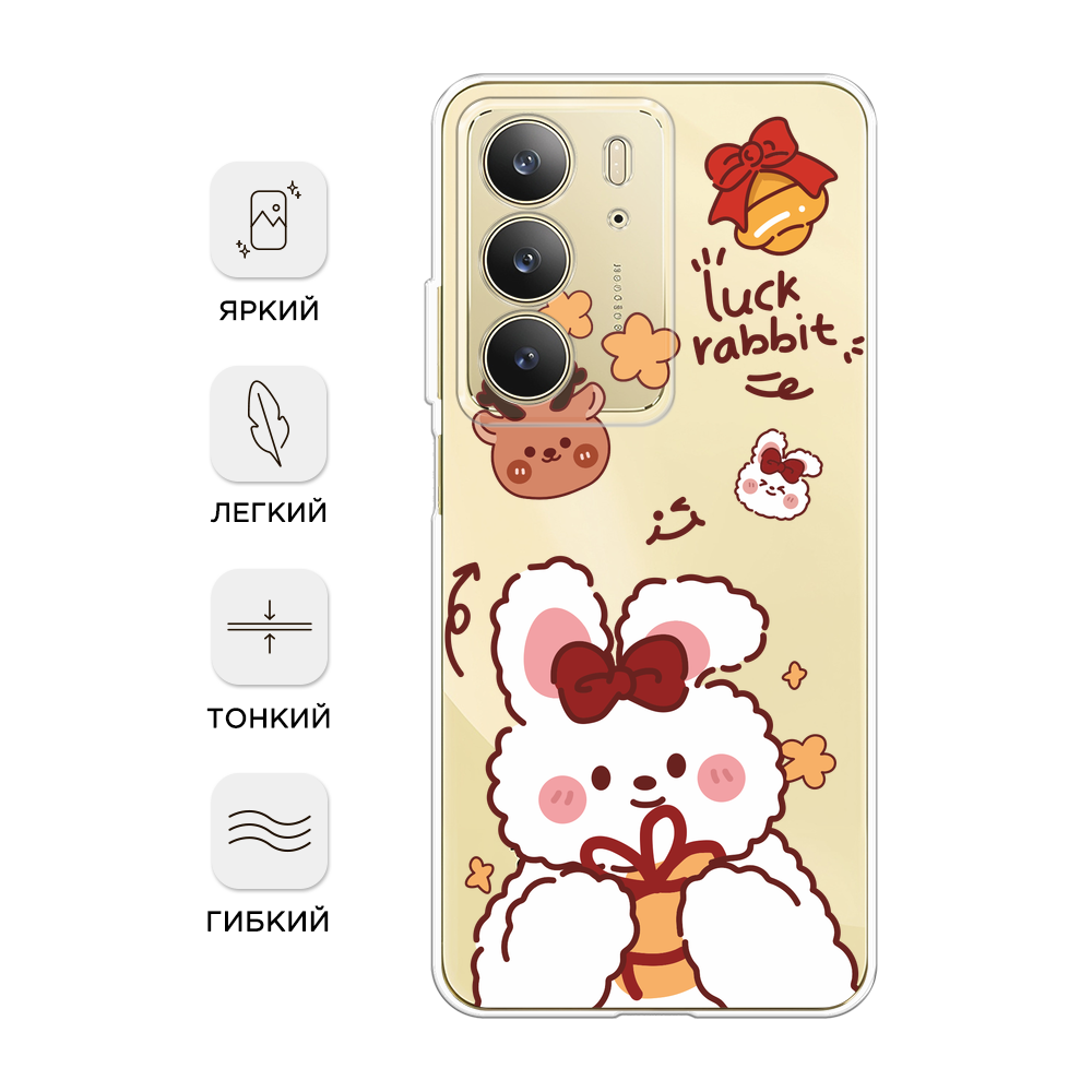 СохранитьЧехол на Realme C75 4G / Реалми C75 4G с принтом Праздничный кролик рисунок 3, прозрачный интересное: