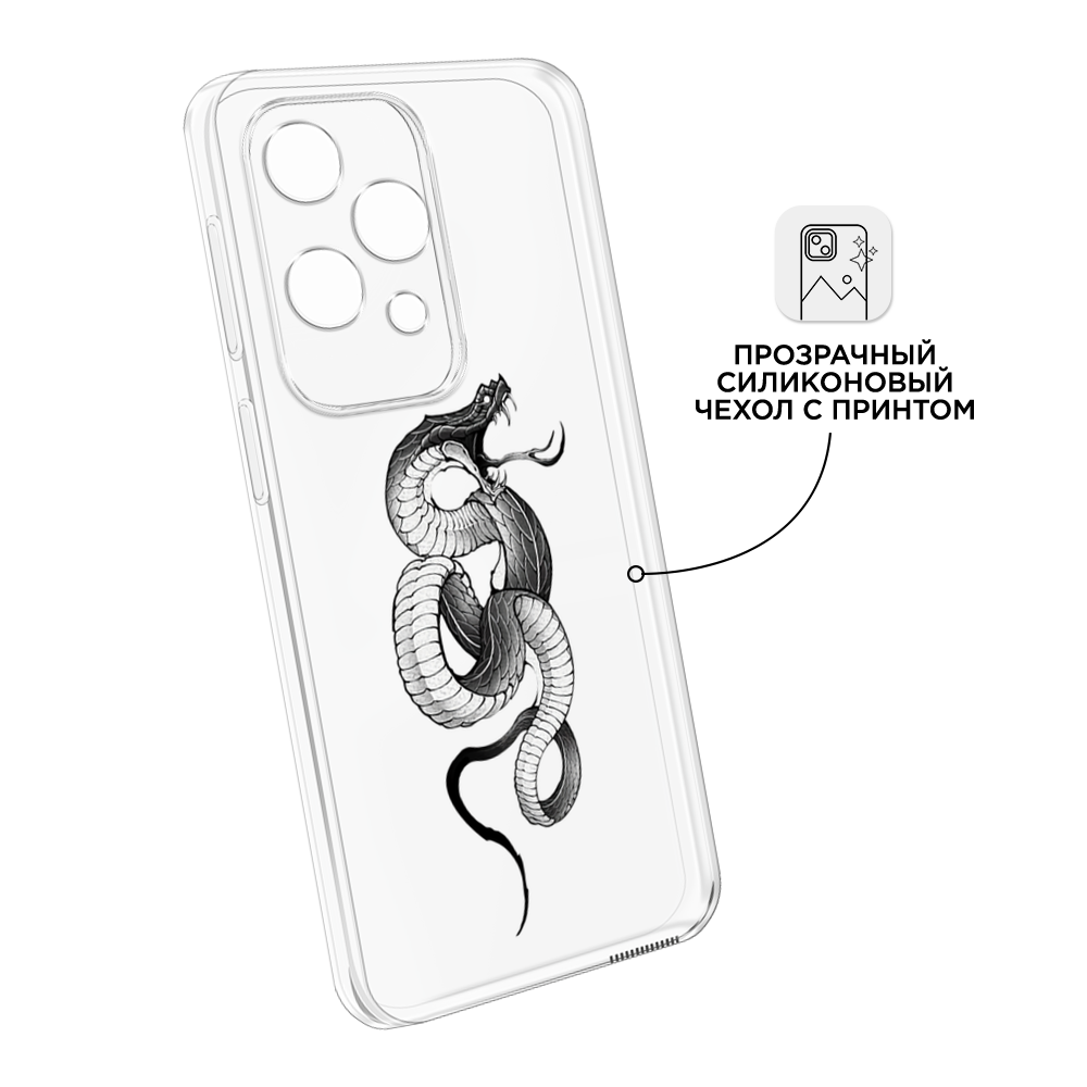 СохранитьЧехол на Realme C75 4G / Реалми C75 4G с принтом Монохромная змея рисунок, прозрачный интересное: