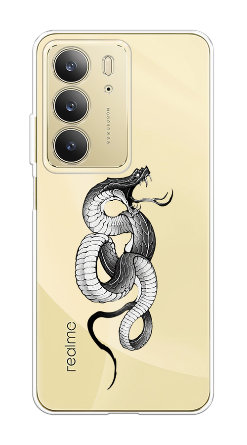 Купить Чехол на Realme C75 4G / Реалми C75 4G с принтом Монохромная змея рисунок, прозрачный