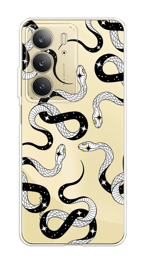 Купить Чехол на Realme C75 4G / Реалми C75 4G с принтом Чёрно-белые змеи паттерн, прозрачный