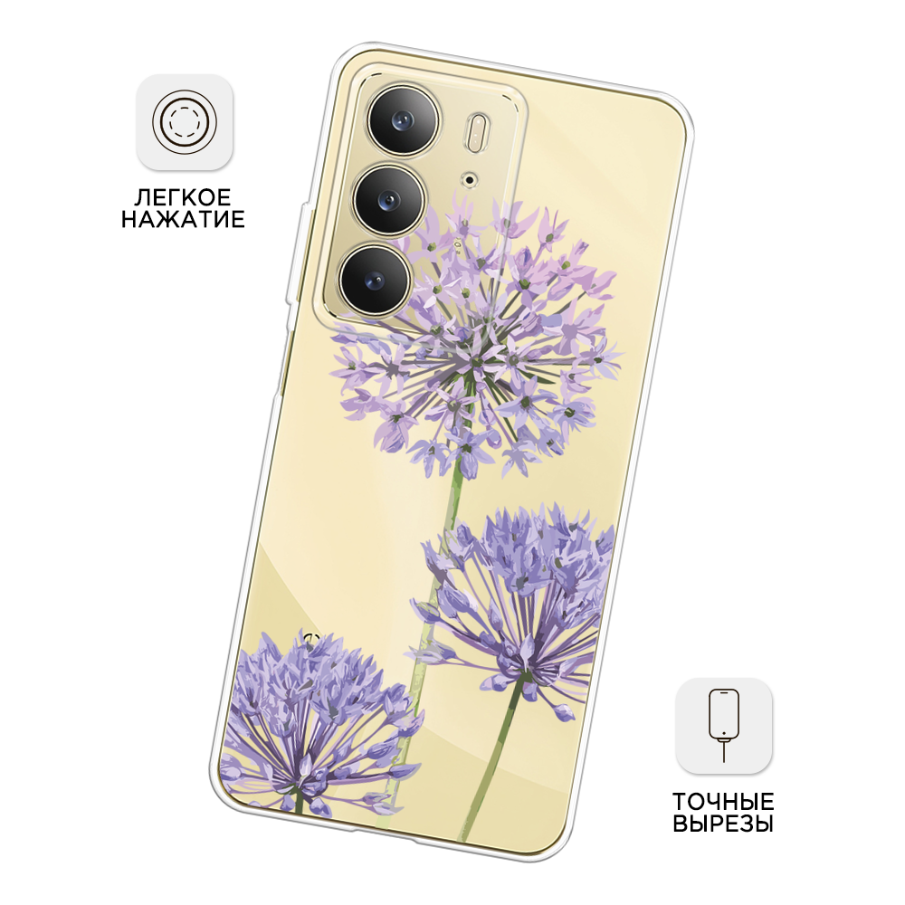 СохранитьЧехол на Realme C75 4G / Реалми C75 4G с принтом Сиреневые цветы акварель, прозрачный интересное: