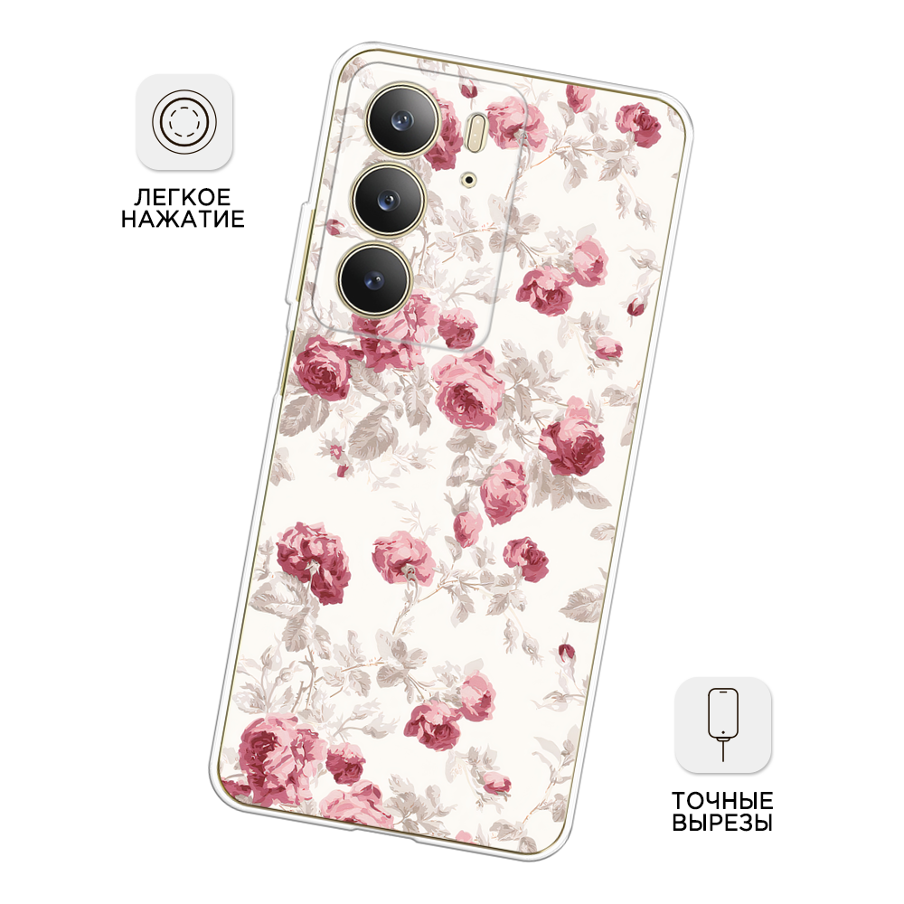 СохранитьЧехол на Realme C75 4G / Реалми C75 4G с принтом Винтажные розовые цветы интересное: