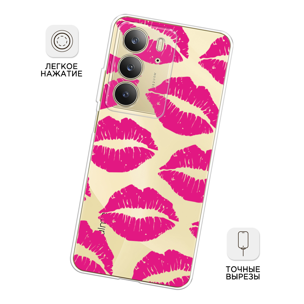 СохранитьЧехол на Realme C75 4G / Реалми C75 4G с принтом Ярко-розовая помада паттерн, прозрачный интересное: